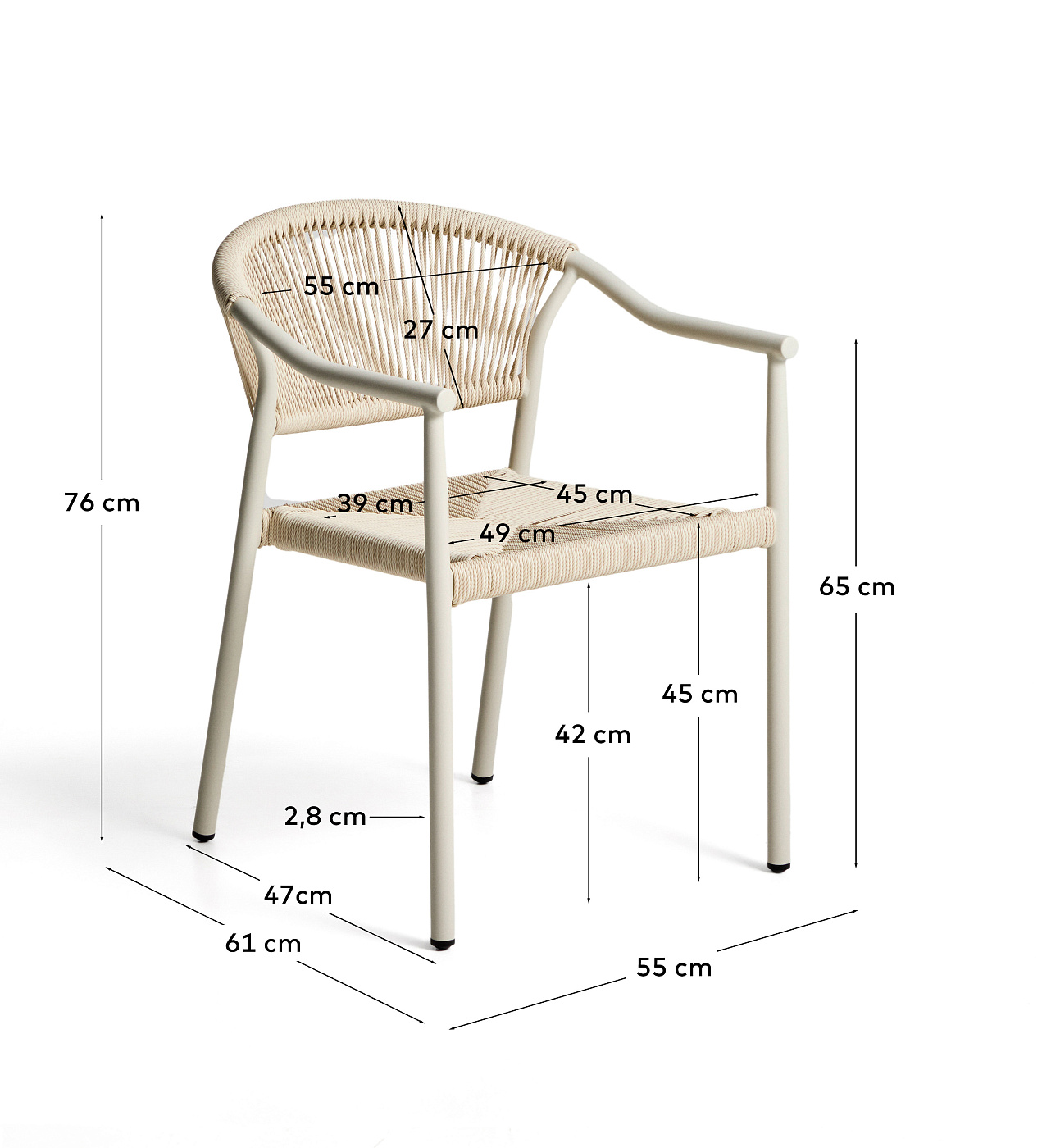 Уличный стул Livadia из бежевого алюминия и веревки