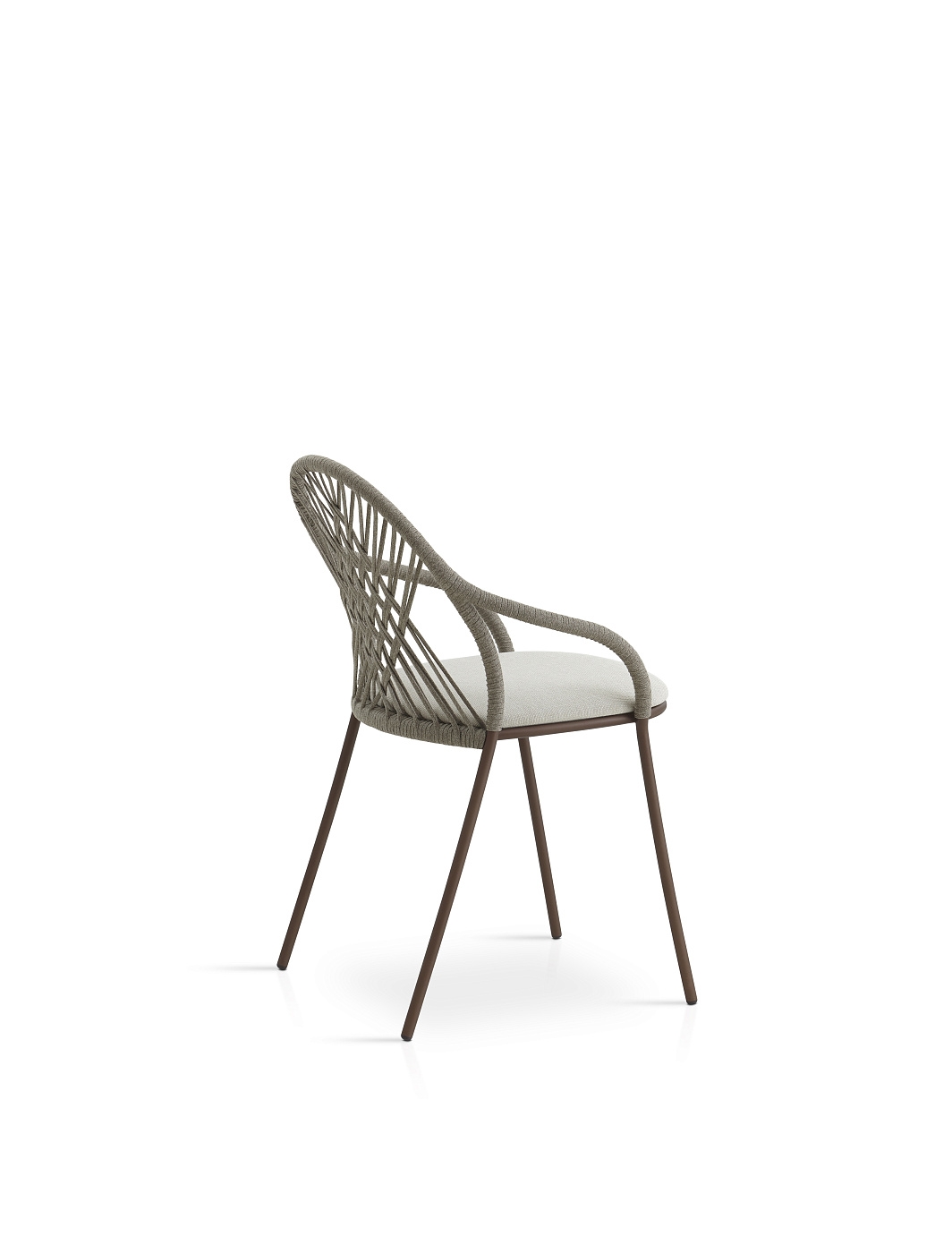 Стул из трубы из нержавеющей стали. Возможность индивидуальной настройки благодаря широкому выбору технических тканей, полностью подходящих для использования на открытом воздухе. Спинка ручной работы традиционно изготовлена из веревки с высоким сопротивлением. Штабелируемый.