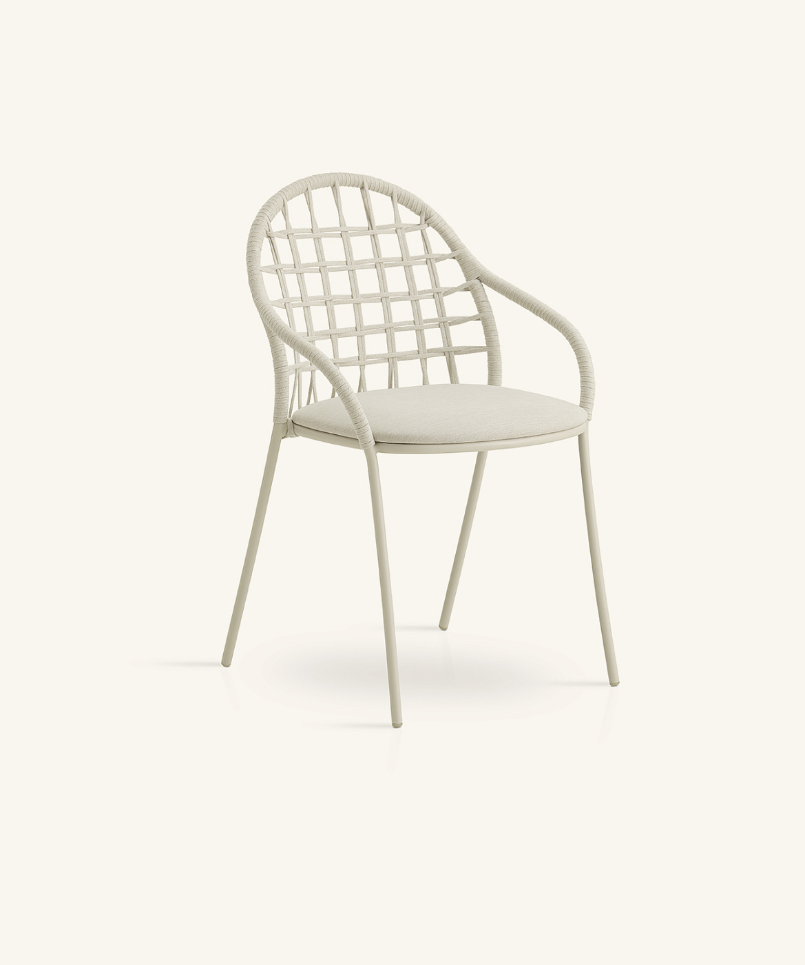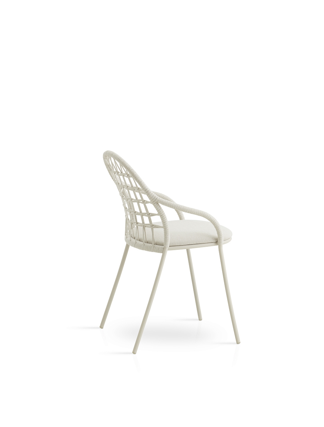 Стул из трубы из нержавеющей стали. Возможность индивидуальной настройки благодаря широкому выбору технических тканей, полностью подходящих для использования на открытом воздухе. Спинка ручной работы традиционно изготовлена из веревки с высоким сопротивлением. Штабелируемый.