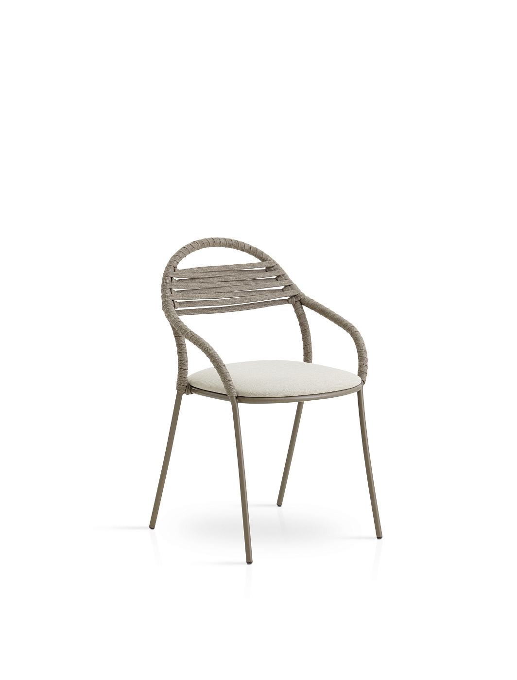 Стул из трубы из нержавеющей стали. Возможность индивидуальной настройки благодаря широкому выбору технических тканей, полностью подходящих для использования на открытом воздухе. Спинка ручной работы традиционно изготовлена из веревки с высоким сопротивлением. Штабелируемый.