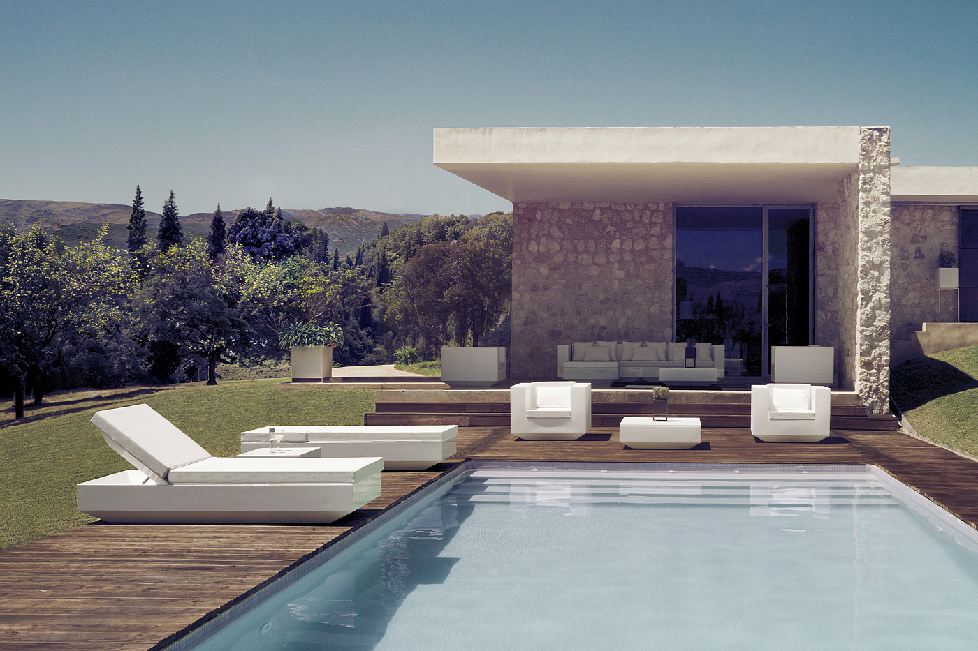 Коллекцию Vela для компании Vondom создал один из ведущих испанских дизайнеров – Рамон Естеве (Ramon Esteve). Основным элементом дизайна этой коллекции являются простые геометрические формы, а фирменный стиль Рамона Эстеве обнаруживает себя в идеальных пропорциях каждого предмета. В коллекцию Vela входят модульный диван, кресло, столик, пуф, шезлонг, различные кашпо, барная стойка и стулья к ней. Несмотря на то, что коллекция получилась достаточно объемной, центральное место в ней занимает все же диван, который благодаря модульной конструкции способен вписаться в любое пространство, а внутренняя подсветка превращает его из предмета мебели в элемент архитектурного освещения.