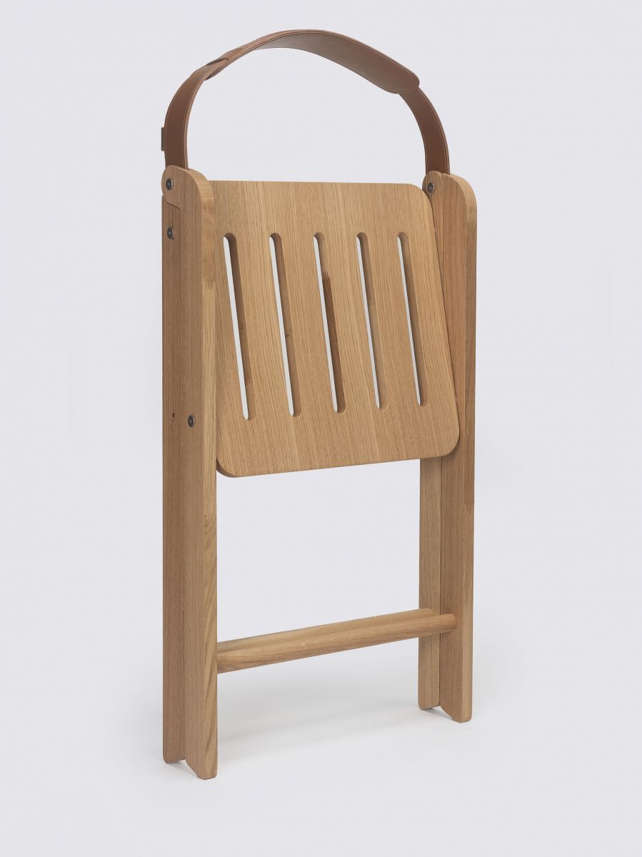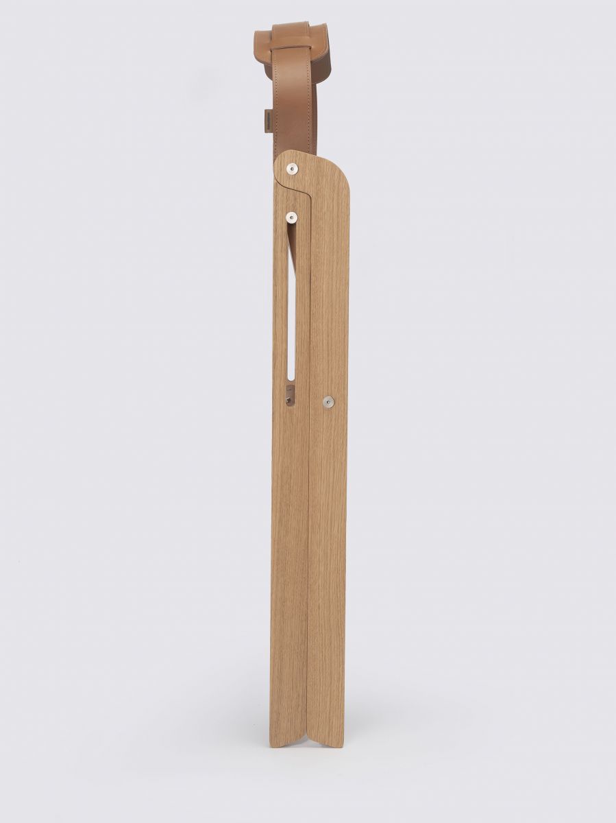 ИКА - это предмет мебели с подвижным и динамичным дизайном. Он состоит из каркаса и сиденья из дубового дерева и прочной кожаной лямки, которая выполняет двойную функцию; помимо того, что он служит спинкой, он позволяет повесить его на плечо, чтобы его было легко носить с собой куда угодно. Благодаря своим размерам, функциональности и дизайну, это изделие, которое может сопровождать нас, куда бы мы ни пошли, и которому найдется место в любом пространстве. Идеальное решение для импровизированных встреч, будь то в вашем собственном доме или нет.