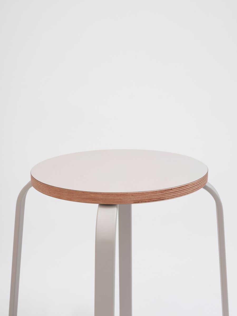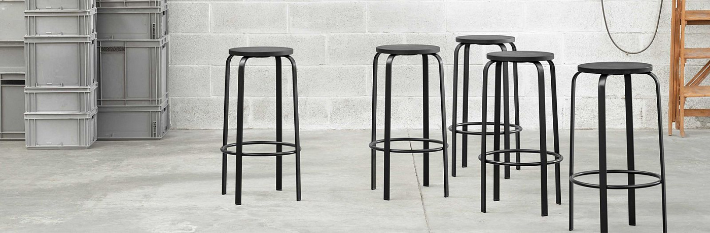 Чико, переосмысливая классику. Табурет со стальной конструкцией в сочетании с круглым сиденьем, которое может быть деревянным, ламинированным или обитым.