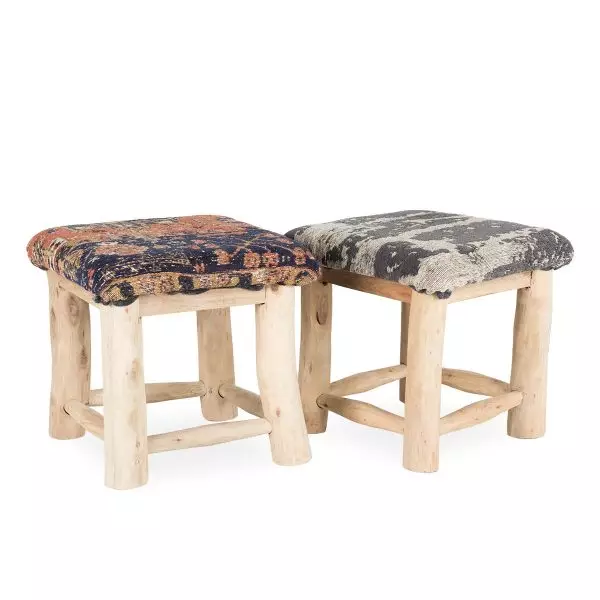 Табуретка низкая Chelsy с мягкой обивкой лососево-голубой
