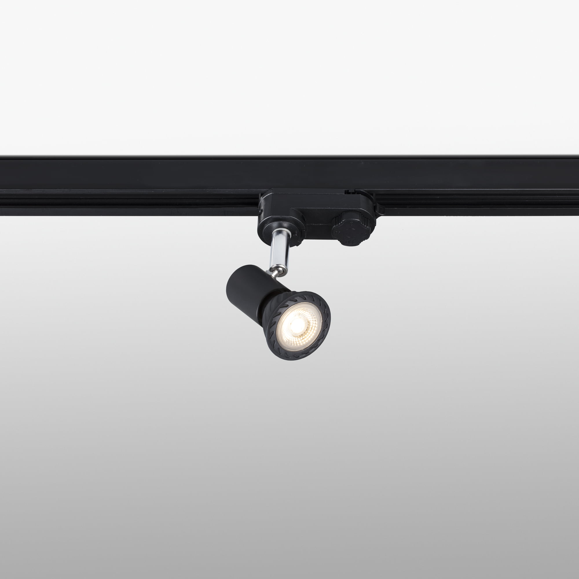 "Черный трековый проектор для внутреннего освещения со светодиодной технологией из металла. Этот проектор идеально подходит для придания современного вида домашнему освещению."