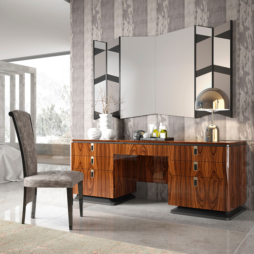 Ámbito - одна из наших самых эксклюзивных коллекций с широким разнообразием возможностей, благодаря которым одно и то же произведение может пройти путь от чистой классики ар-деко до самого модернистского авангарда , всегда с использованием высококачественных материалов, благородного шпона, как глянцевой, так и матовой отделки, ручек и детали в хромированной или латунной отделке.