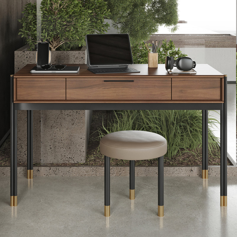 Туалетный столик BENISSA шпон ореха F, черный матовый лак, латунь