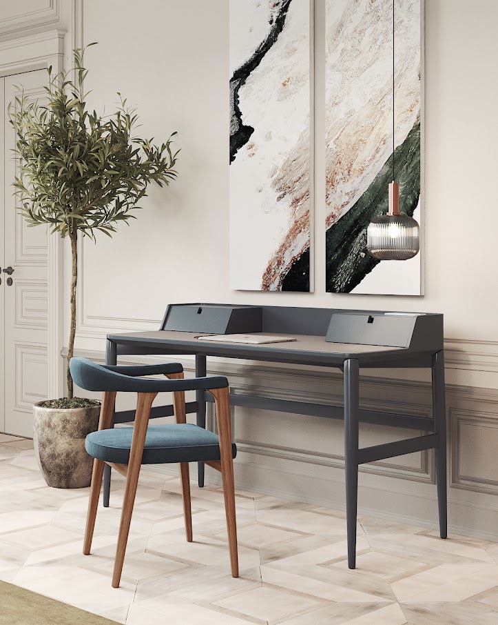 Дерево бонсай известно как одно из самых элегантных и изысканных растений в природе. Внушительные ножки стола из цельного дерева Bonsai, благодаря своей последовательности и дизайну, охватывают остальную деревянную конструкцию, состоящую из двух ящиков и кожаной столешницы, обеспечивая поддержку, элегантность и детализацию, необходимые для завершения любого современного пространства.