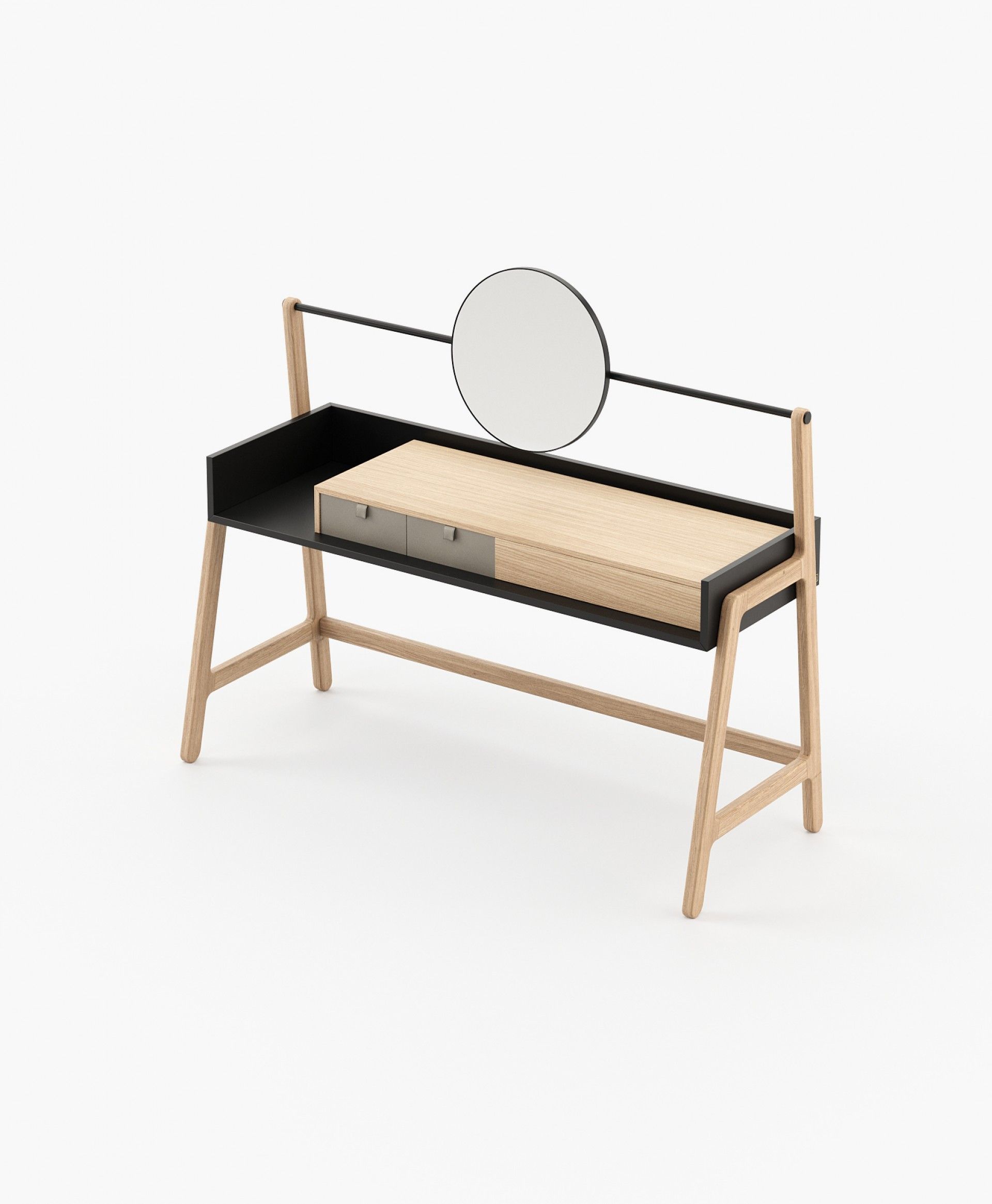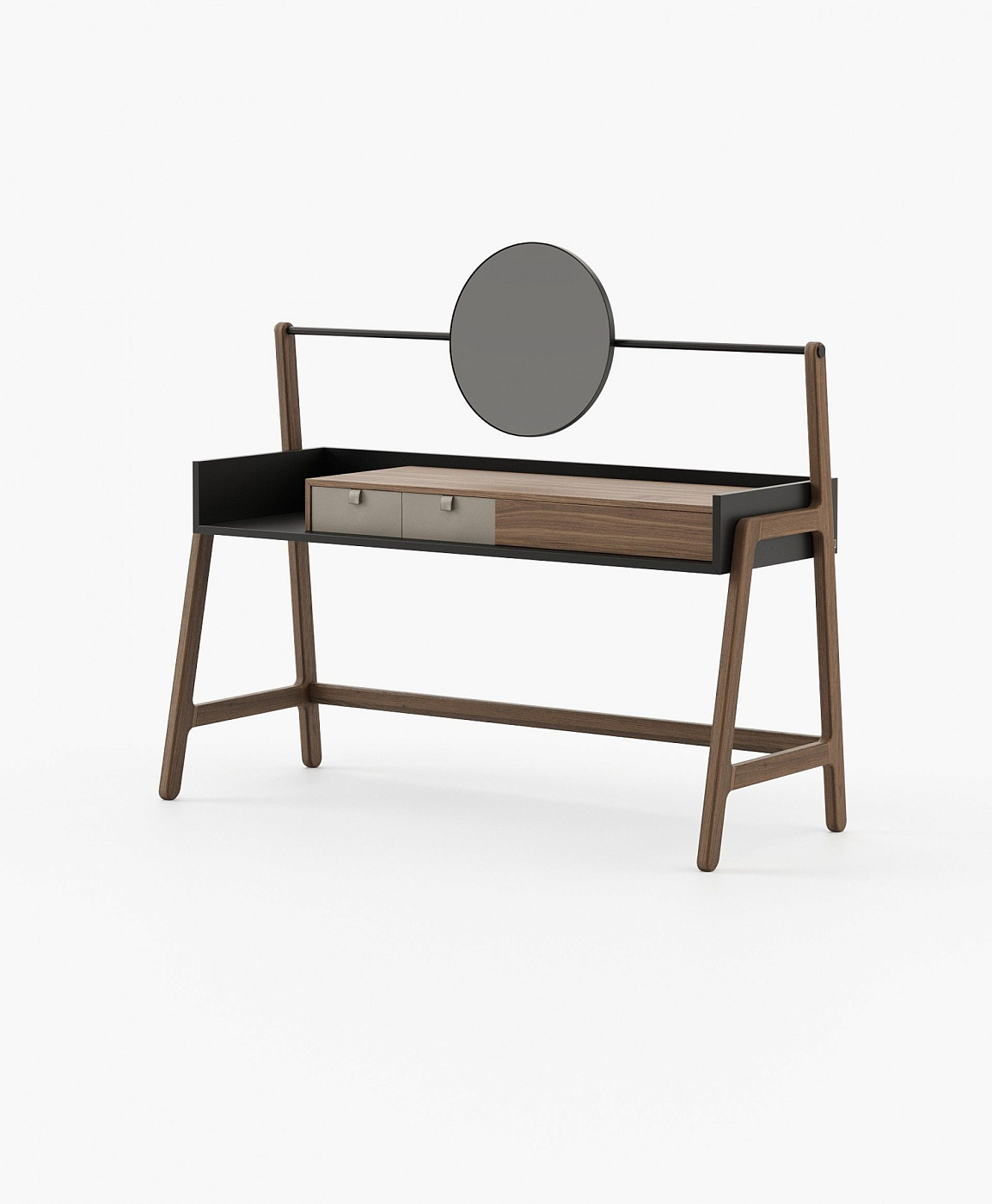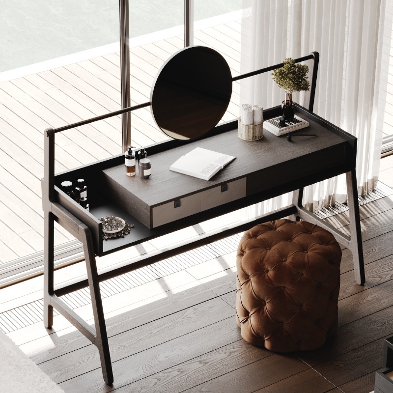 Hamlet - шикарный туалетный столик с зеркалом, тщательно продуманный для сочетания красоты и функциональности. Благодаря вместительным ящикам для хранения и круглому зеркалу Hamlet обеспечивает хранение косметических средств, аксессуаров для волос и украшений, что делает его незаменимым дополнением к любому шкафу или спальне.