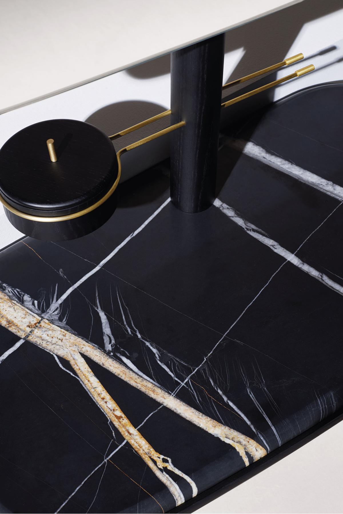 Туалетный столик с пуфом Momentos мрамор Sahara Noir / черный ясень / кремовый бархат