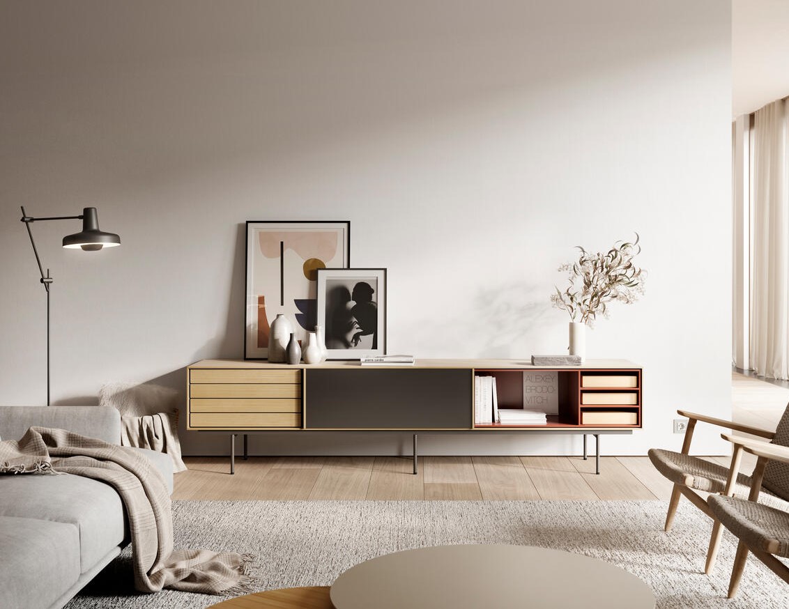 Тумба под ТВ Aura из дуба с открытыми элементами
