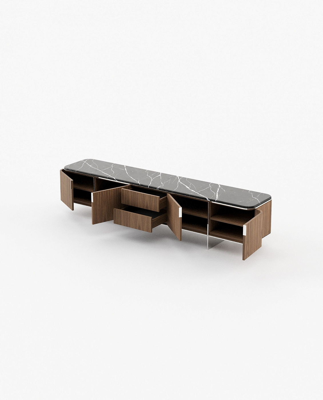 Yoana Тумба под TV из орехового шпона и черного металла 160 x 40 см