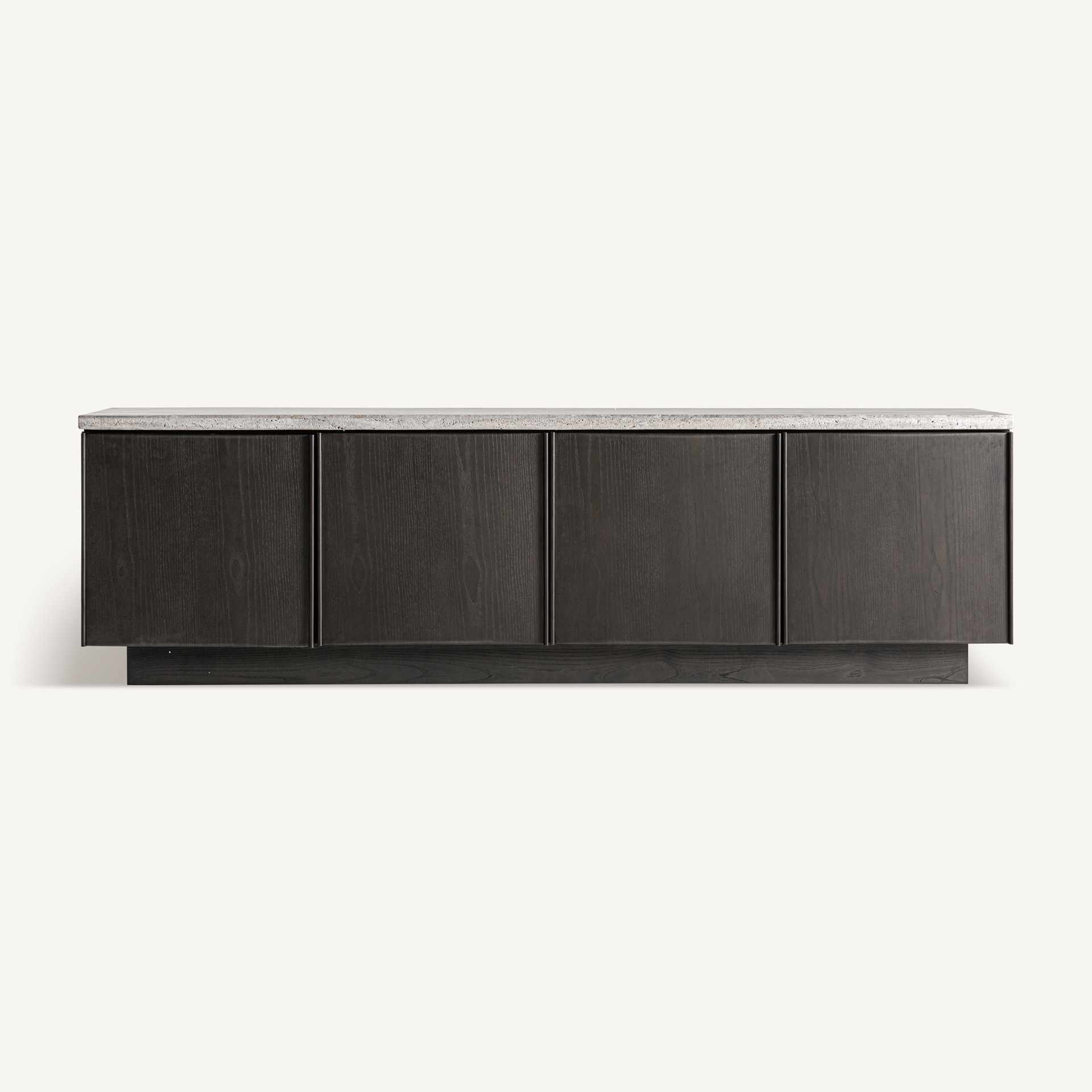Тумба под телевизор Rignac в современном стиле, изготовленная из травертина серого цвета в сочетании с ясенем коричневого цвета. Ширина: 221 см, Глубина: 45 см, Высота: 65 см
