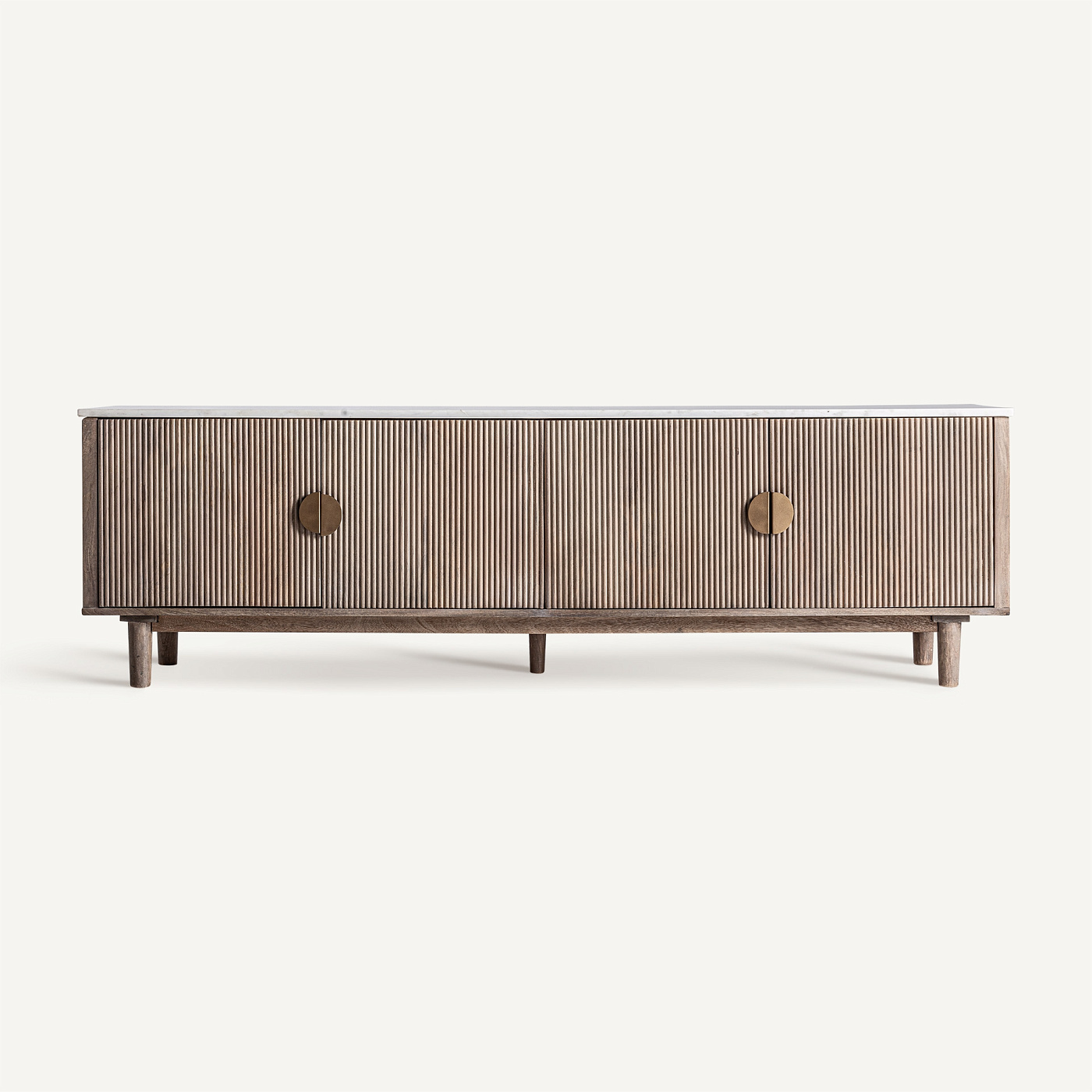 Подставка под телевизор Zerf от VICAL сочетает в себе теплоту мангового дерева и элегантность белого мрамора. Её линейный дизайн и каркас из МДФ обеспечивают визуальный баланс и функциональность. Эта модель преобразит гостиную, придав ей сдержанность и индивидуальность.