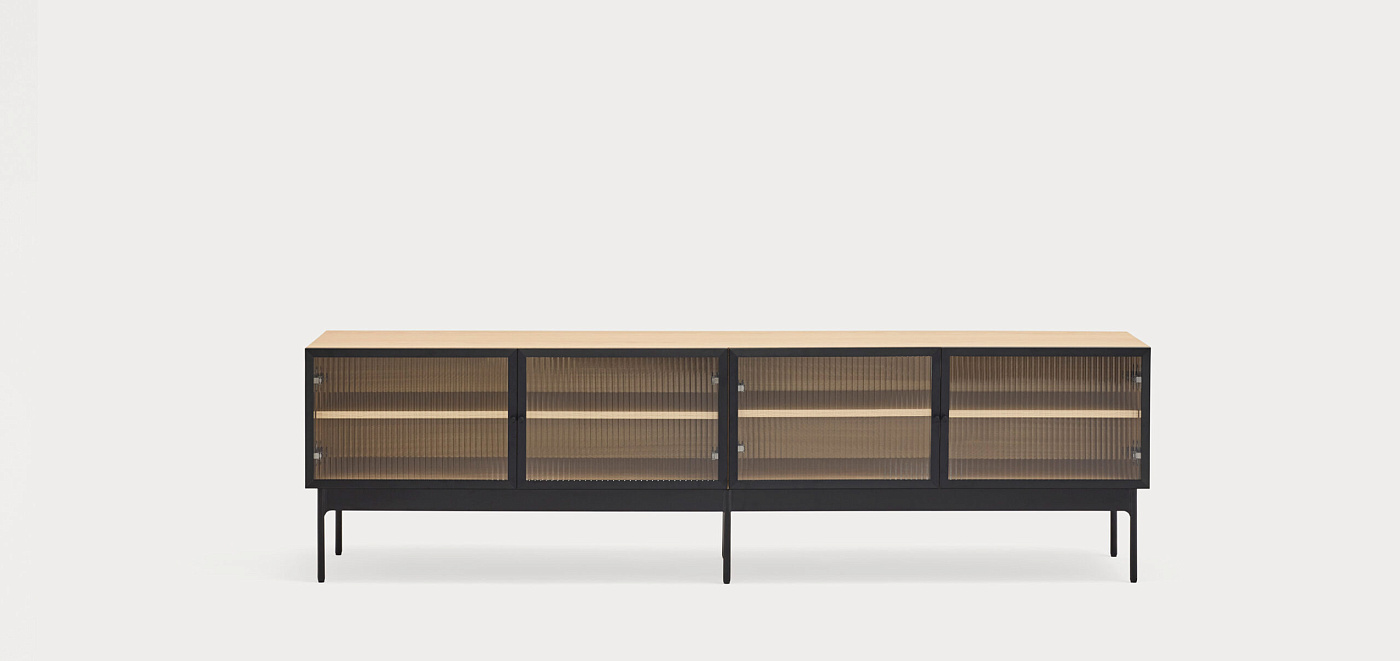 Yoana Тумба под TV из орехового шпона и черного металла 160 x 40 см