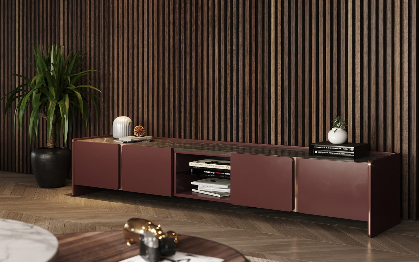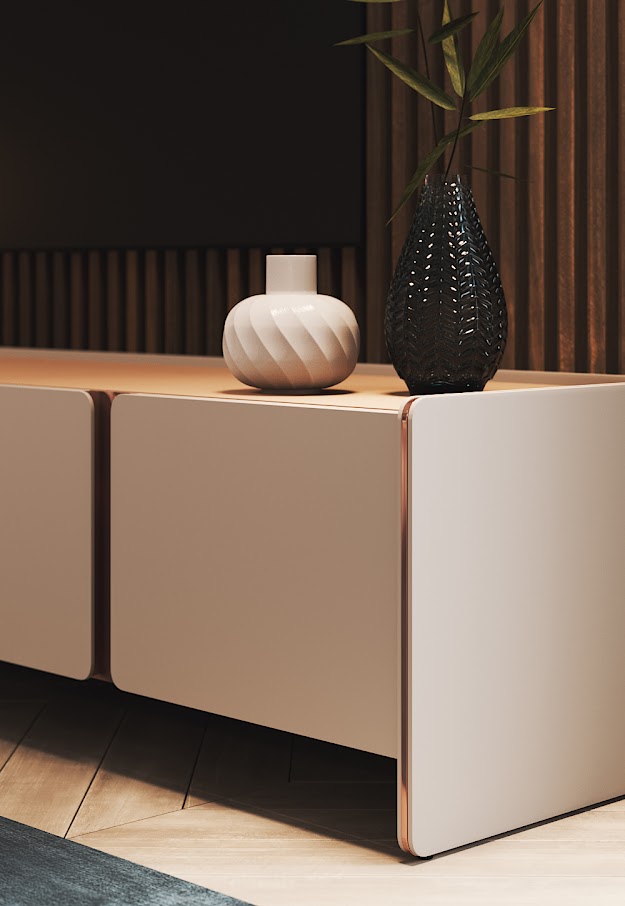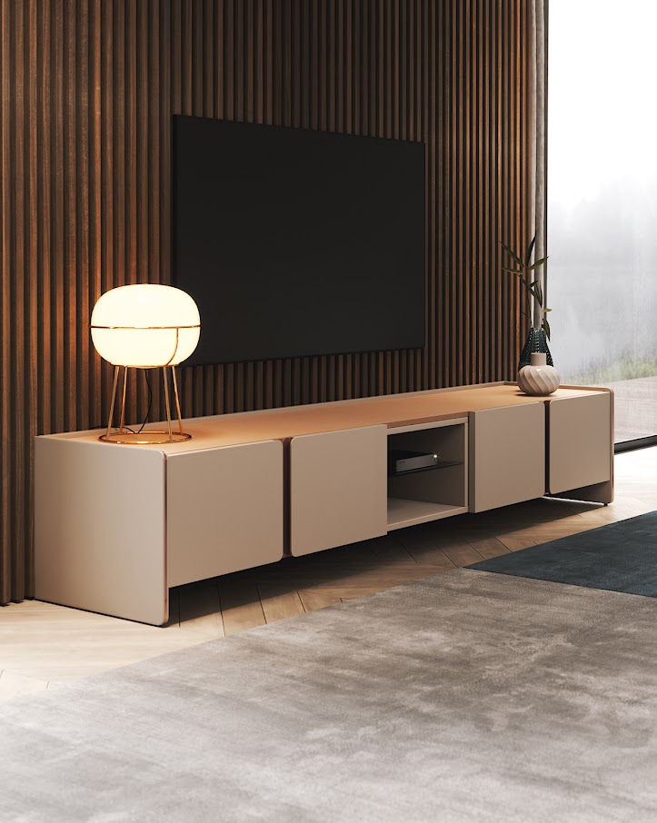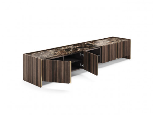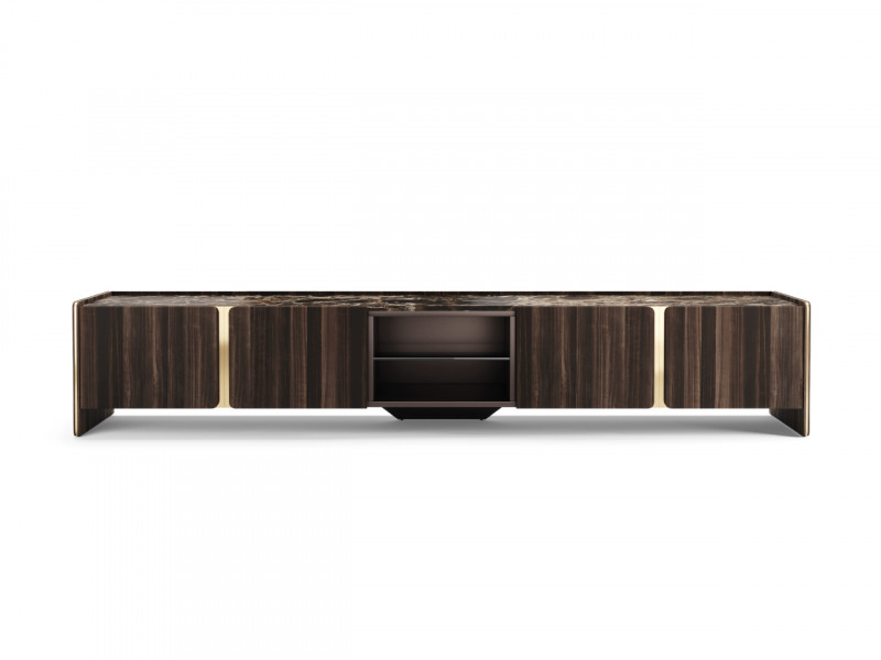Элегантный силуэт и плавные линии тумбы под телевизор Havasu следуют эстетическому языку райского водопада, который ее характеризует. Структурные изогнутые края, сочетающие четыре дизайнерские дверцы, контрастирующие с металлическими деталями и центральным открытым ящиком, делают эту стильную тумбу подходящим предметом для интеграции в любую современную атмосферу.