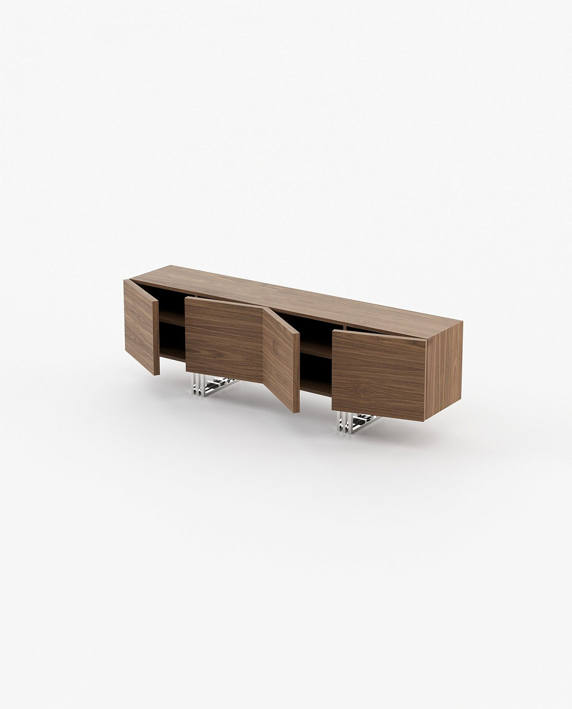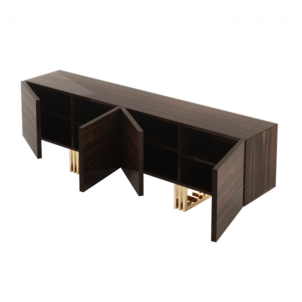 Полностью сделанная из цельного дерева, тумба под телевизор Lyon представляет детали из никелированной нержавеющей стали, которые контрастируют со свежей отделкой дверей и ящиков.
