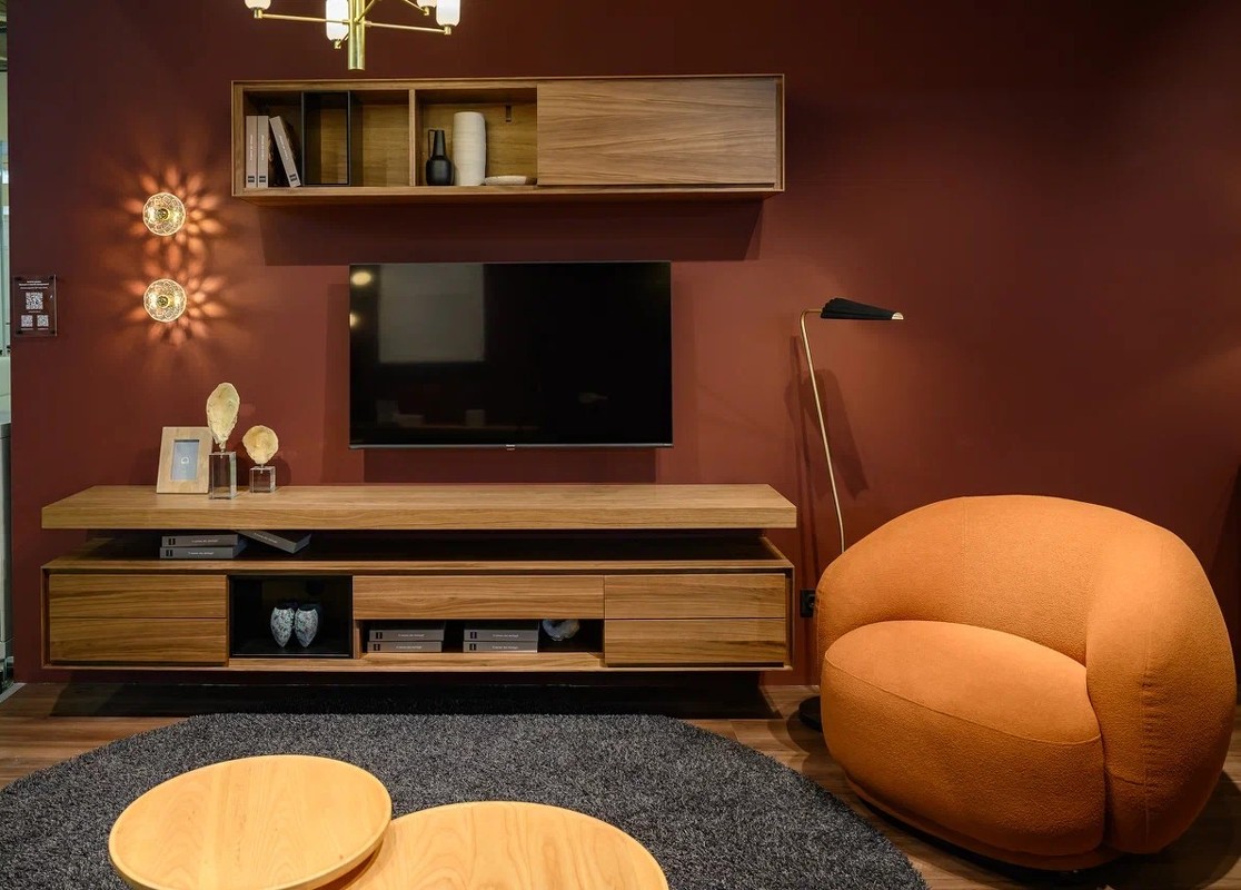 Тумба под TV MIRAMAR 240 шпон ореха F, черный матовый лак