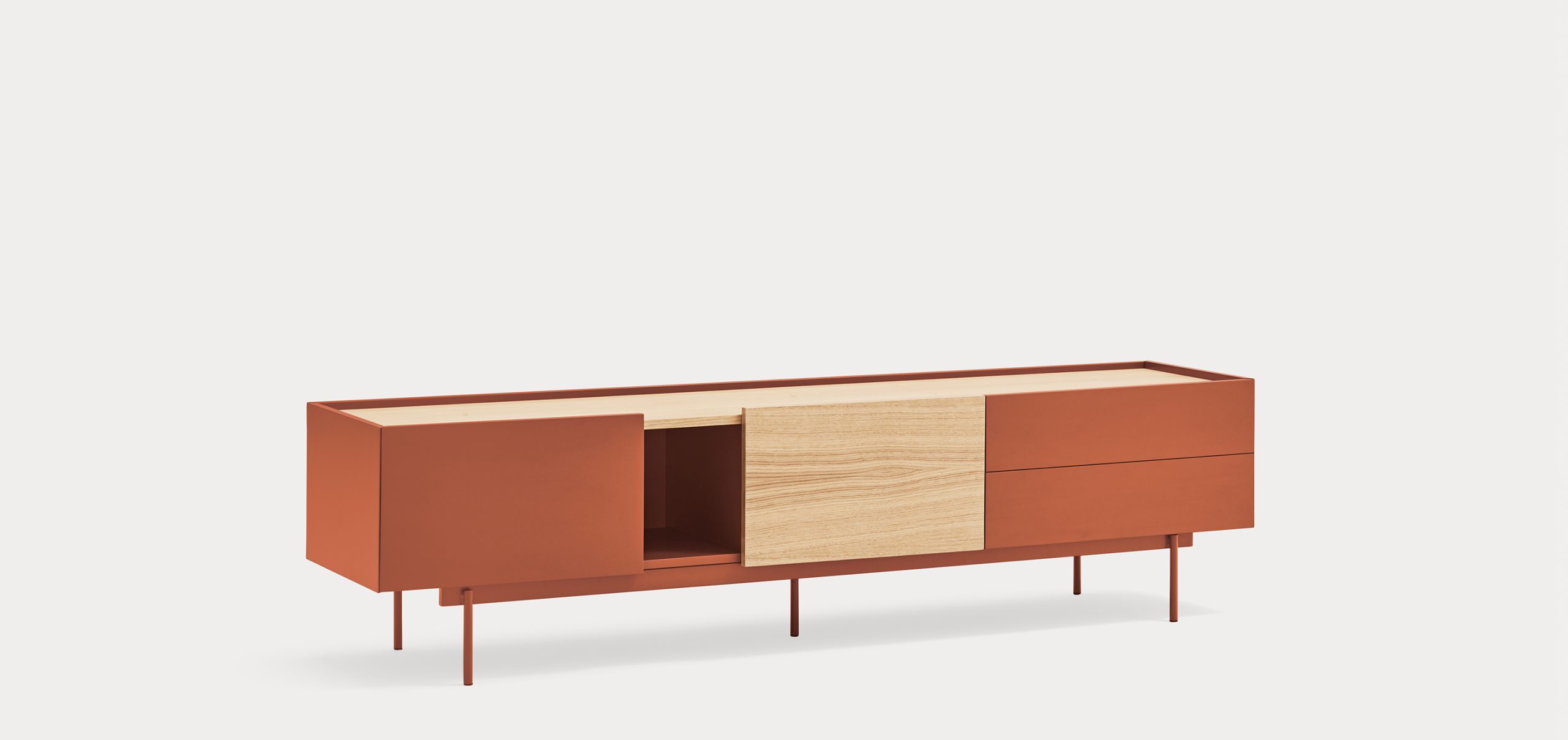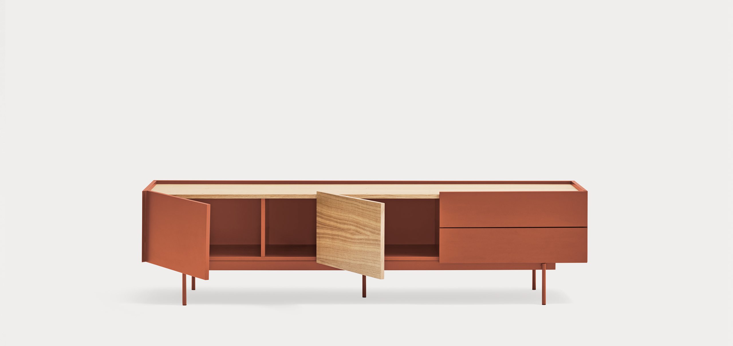 Otto отличается современным стилем с чистыми линиями, в котором цвет сочетается с акцентами из натурального шпона, что позволяет адаптировать его к широкому спектру помещений.