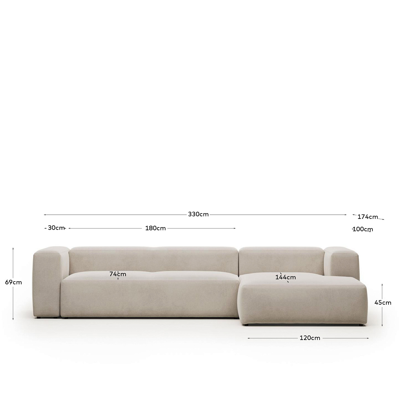 Диван 4-местный Blok с правым шезлонгом бежевый 330 см