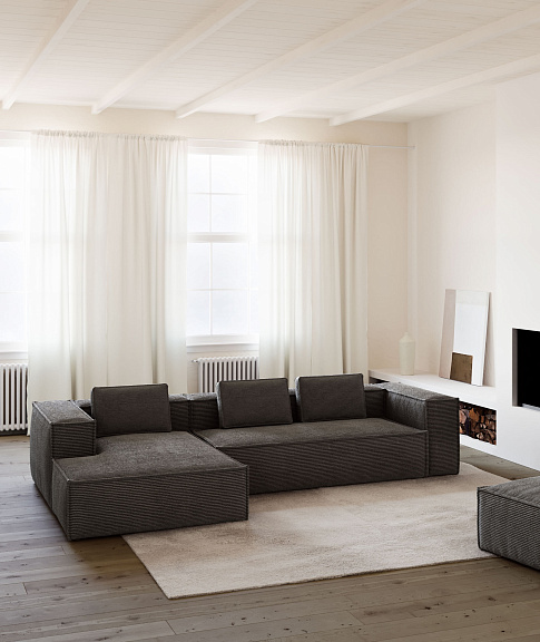 Диван 3х местный Blok с левым шезлонгом серый вельвет