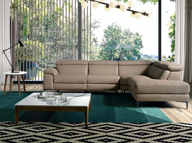 Угловой диван с реклайнером 5320-R /6043 кожаный бежевый