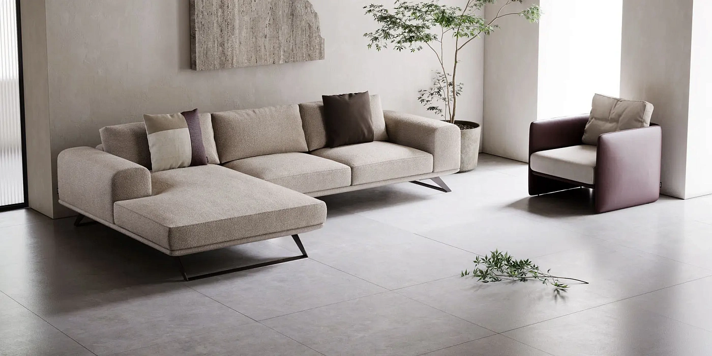 Угловой диван Aniston на ножках из текстурированной стали