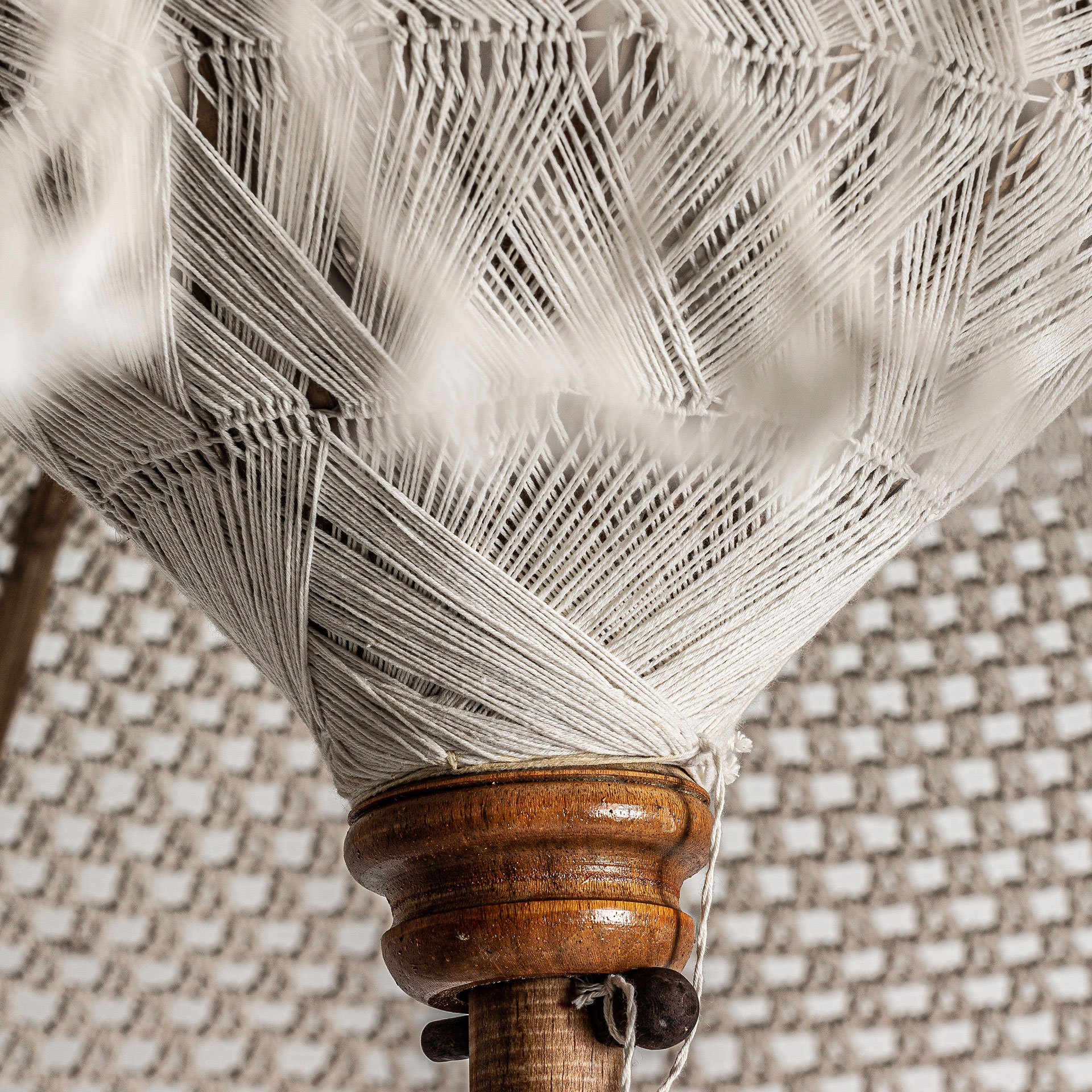 Сочетание средиземноморского стиля и современности. Этот зонт с бахромой, изготовленный из светло-коричневого тикового дерева и белой ткани, создает атмосферу спокойствия и элегантной тени. Складной. Ширина: 192 см, Глубина: 192 см, Высота: 259 см