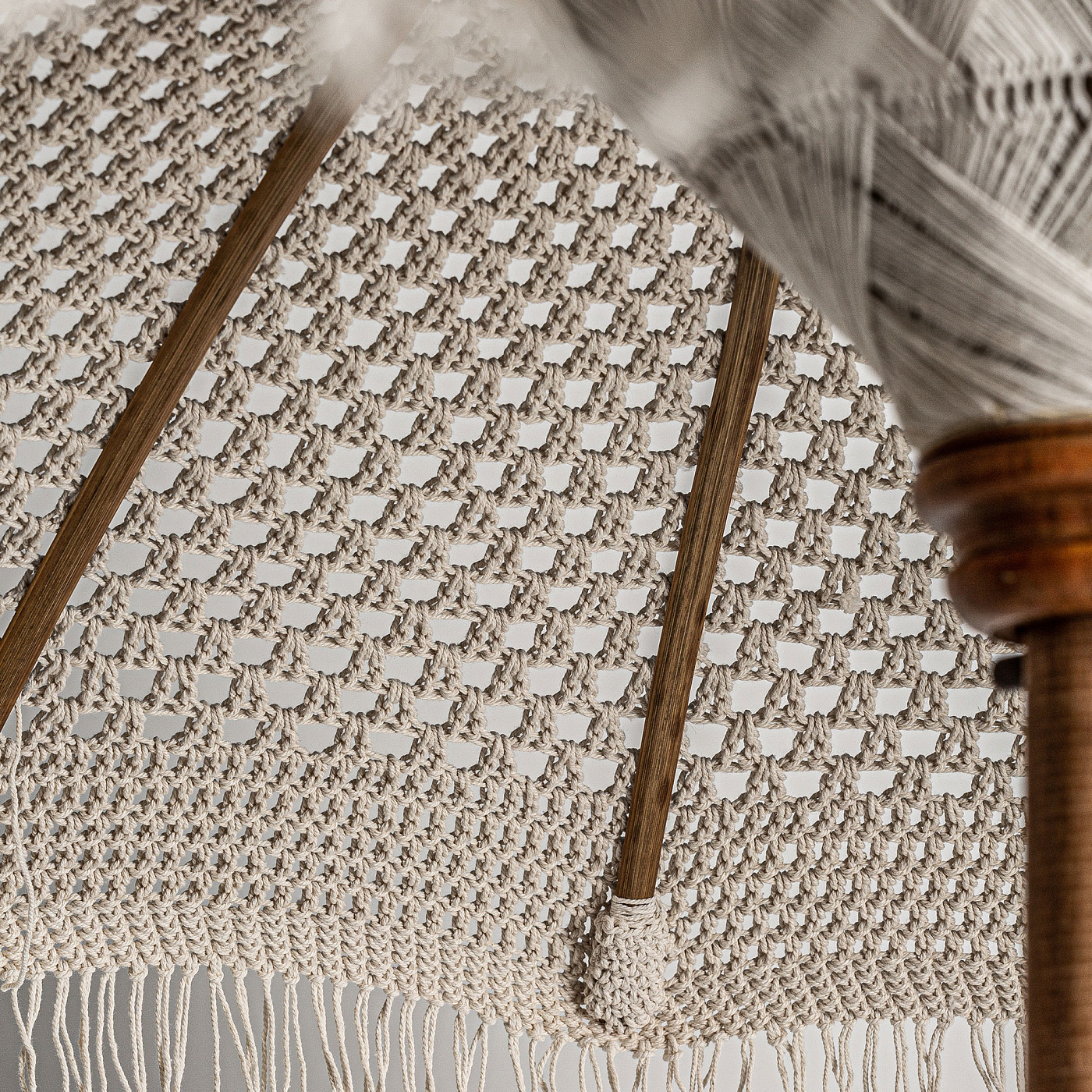 Зонт Luka, натуральный/белый цвет, современный стиль. Изготовлен из тикового дерева.