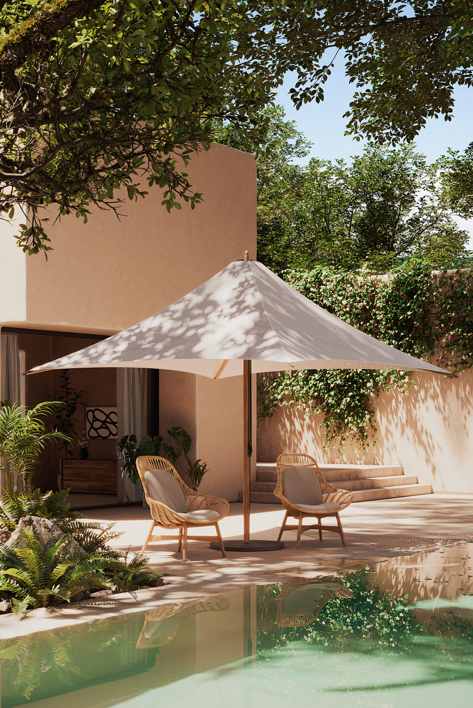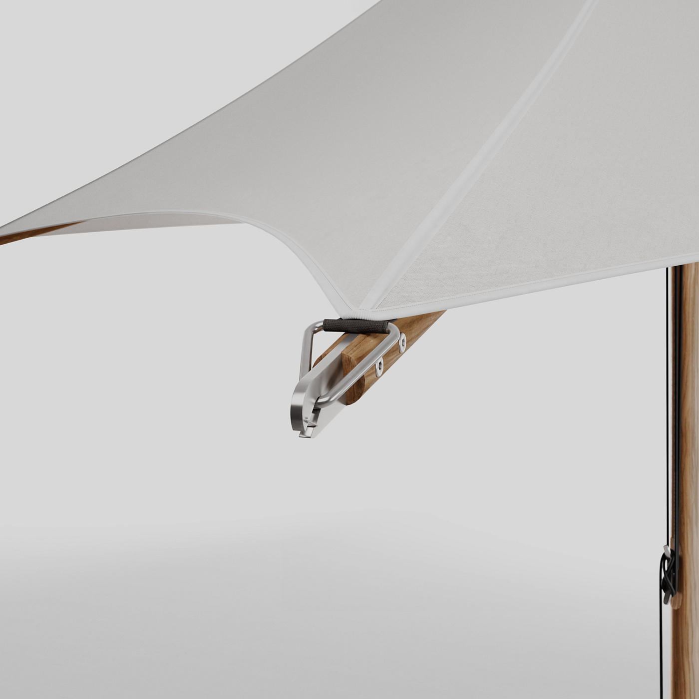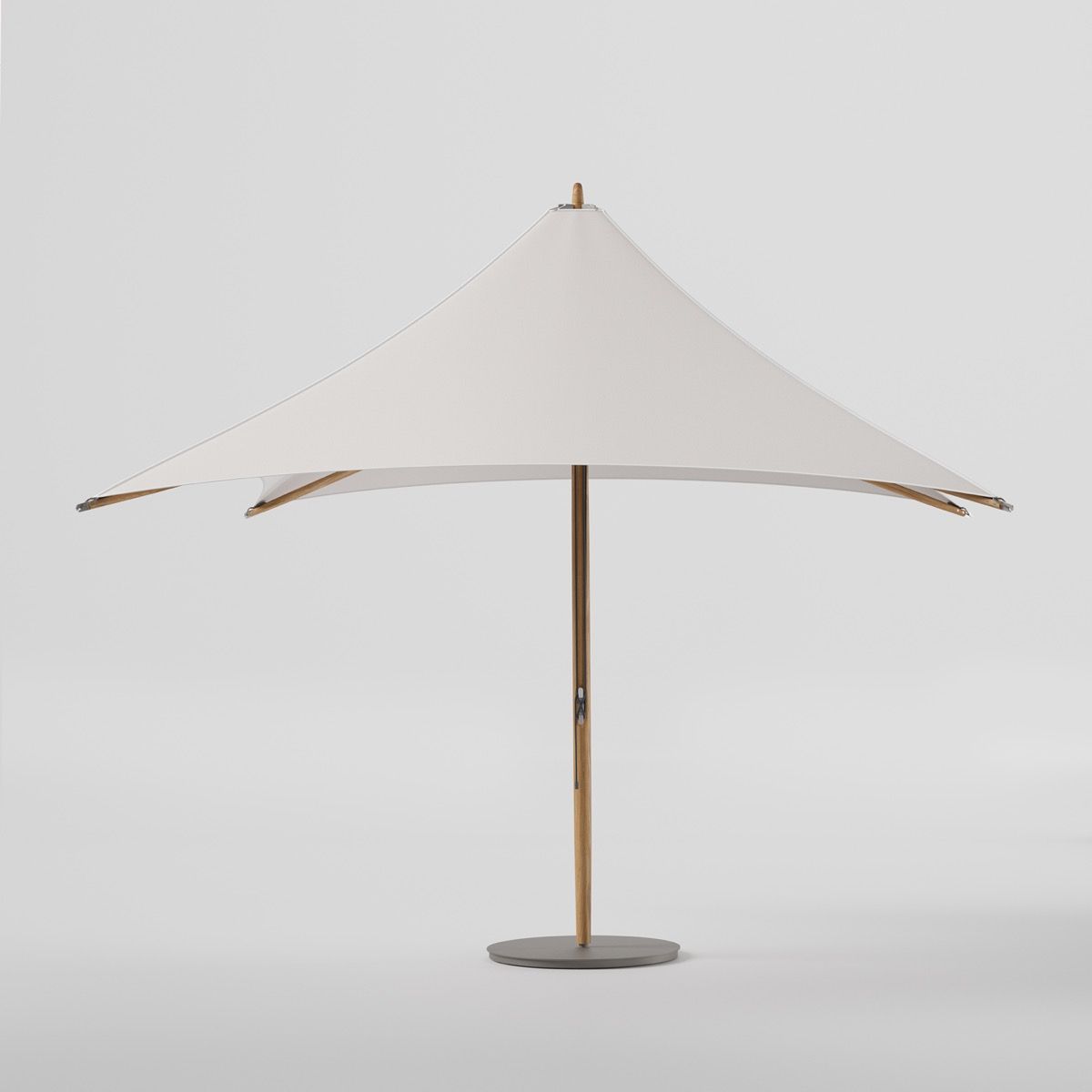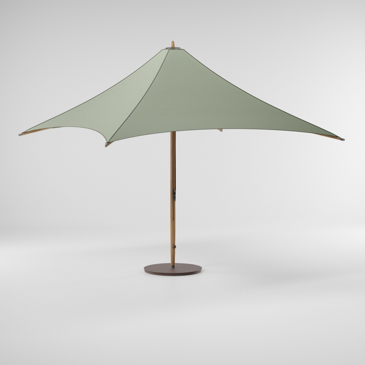 Paladin - это деревянный зонтик для домашнего и общественного пользования. Его купол, кажется, парит на верхушке мачты элегантной формы. В конструкции используется механический принцип, который включает натяжение навеса в свою структурную логику. Благодаря наличию только мачты и четырех подвижных стоек ткань поглощает растягивающие усилия зонта в развернутом виде. Мачта проходит прямо через центр навеса, оставляя центральное отверстие, которое действует как непрямой световой люк и обеспечивает циркуляцию воздуха. Деревянные элементы выполнены из натурального тика с усиливающей сердцевиной из алюминия. Механические соединения и крепежные детали из алюминия и нержавеющей стали спроектированы таким образом, чтобы свести к минимуму расход материала и обеспечить максимальную производительность.