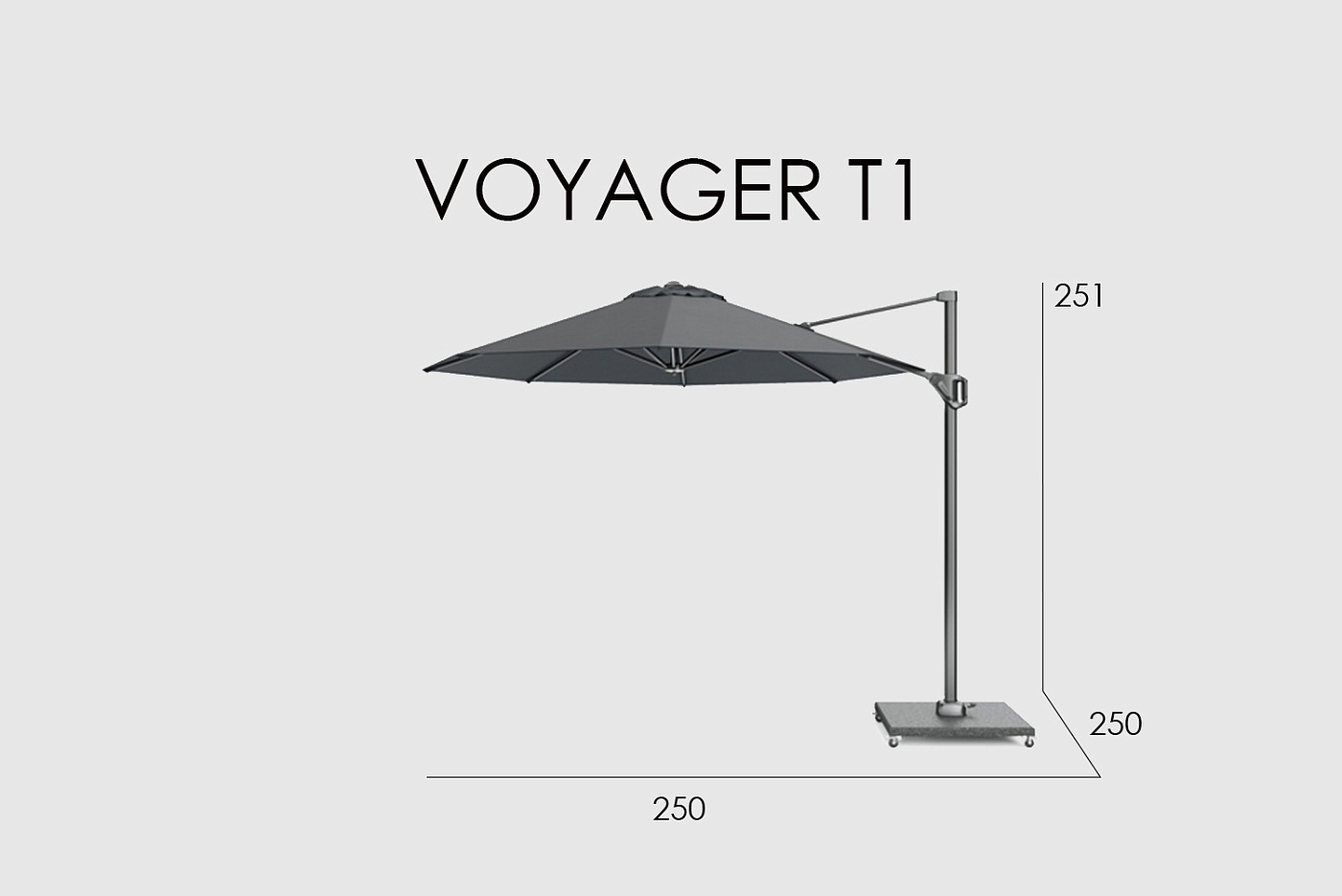 Зонт Voyager T1 антрацит — светло-серый 250 x 250 (с основанием и чехлом)