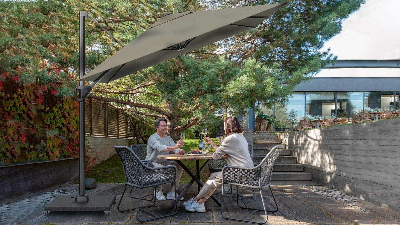 Надежная модель Voyager T1 наклоняется назад и легко поворачивается на 360 градусов. Эти особенности, в сочетании с тремя размерами, обеспечивают беззаботную тень в небольших садах. Уникальный размер 300x200 см идеально подходит для использования с прямоугольным садовым столом.