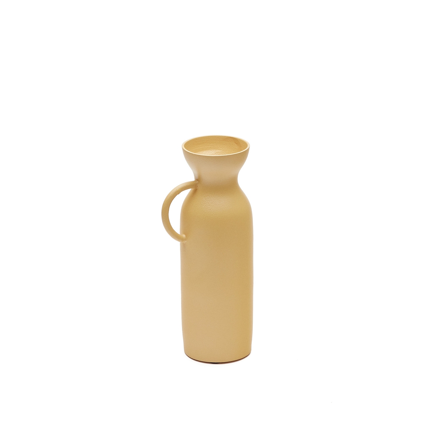 Ваза полностью сделана из алюминия, окрашенного в желтый цветом методом порошкового нанесения. Такая технология обеспечивает идеально ровное покрытие, равномерное распределение цвета. Кроме этого, эмаль защищает металл от негативного воздействия воды.