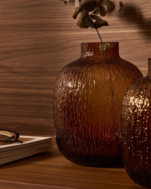 Ваза Shali от фабрики La Forma (ex Julia Grup) – текстурированный коричневый дизайн из толстого стекла.