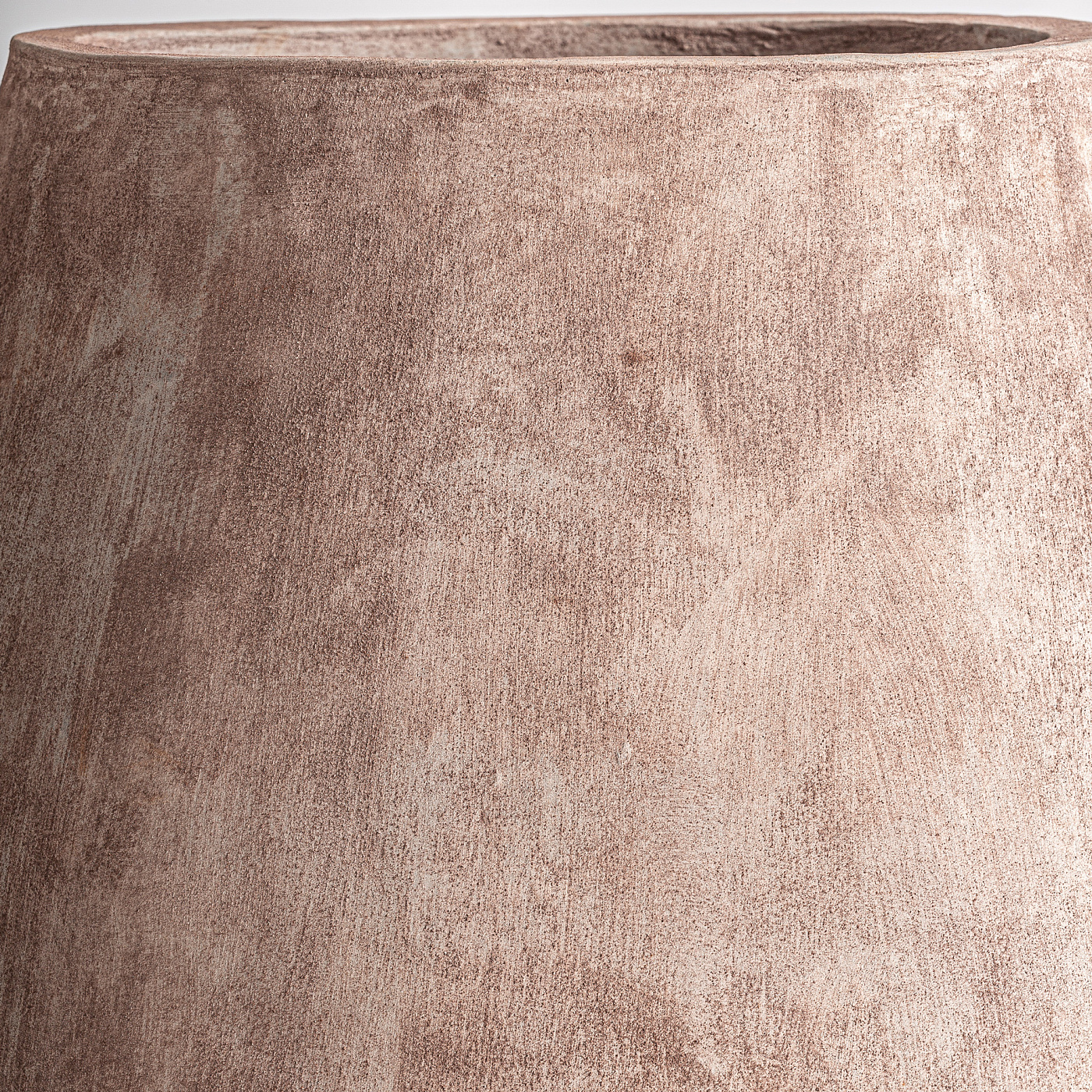 Ваза, выполненная из цемента бледно-розового цвета в сочетании со стекловолокном. Ширина: 55 см, Глубина: 55 см, Высота: 60 см
