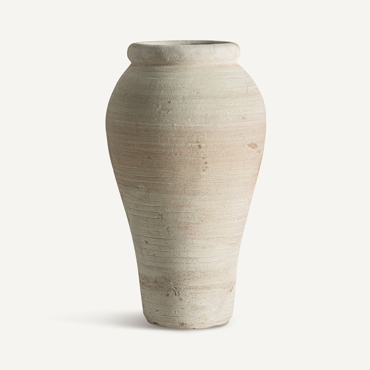Кувшин в классическом стиле, изготовленный из глины кремового цвета с состаренной отделкой. Ширина: 29 см, Глубина: 29 см, Высота: 59 см