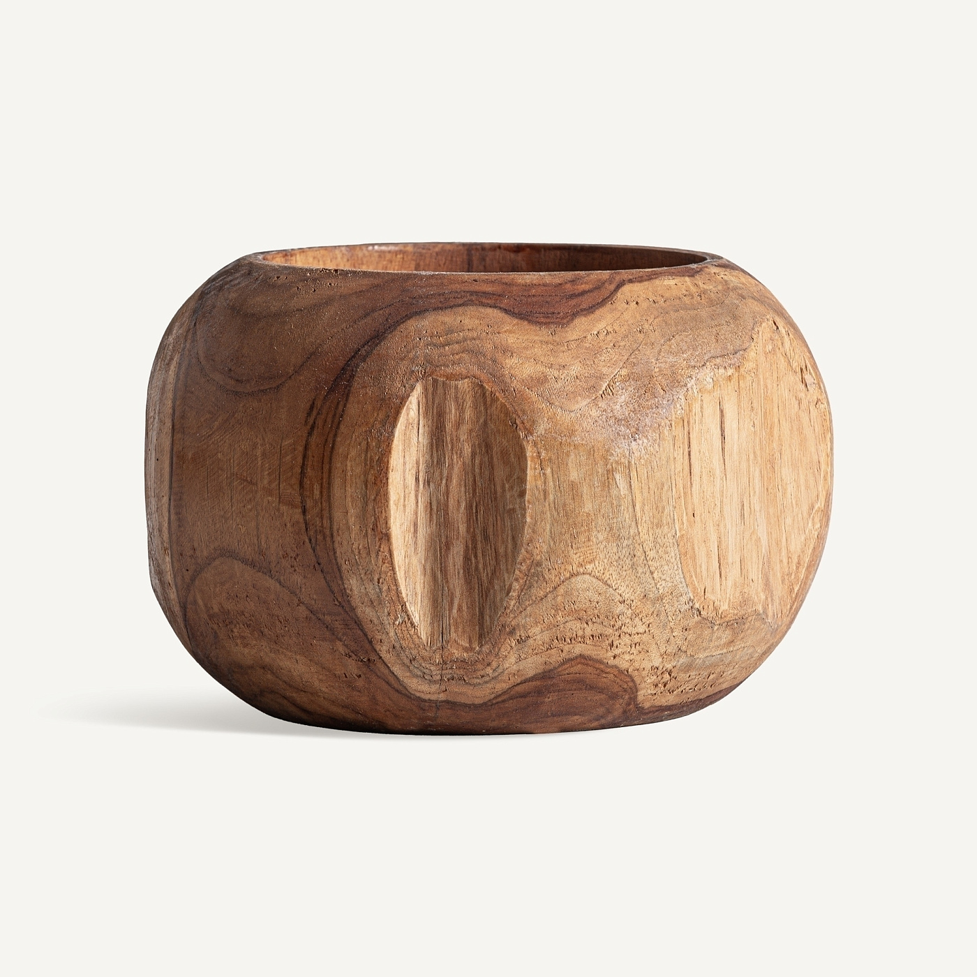Ваза в этническом стиле, выполнена из тикового дерева коричневого цвета. Ширина: 27 см, Глубина: 27 см, Высота: 19 см