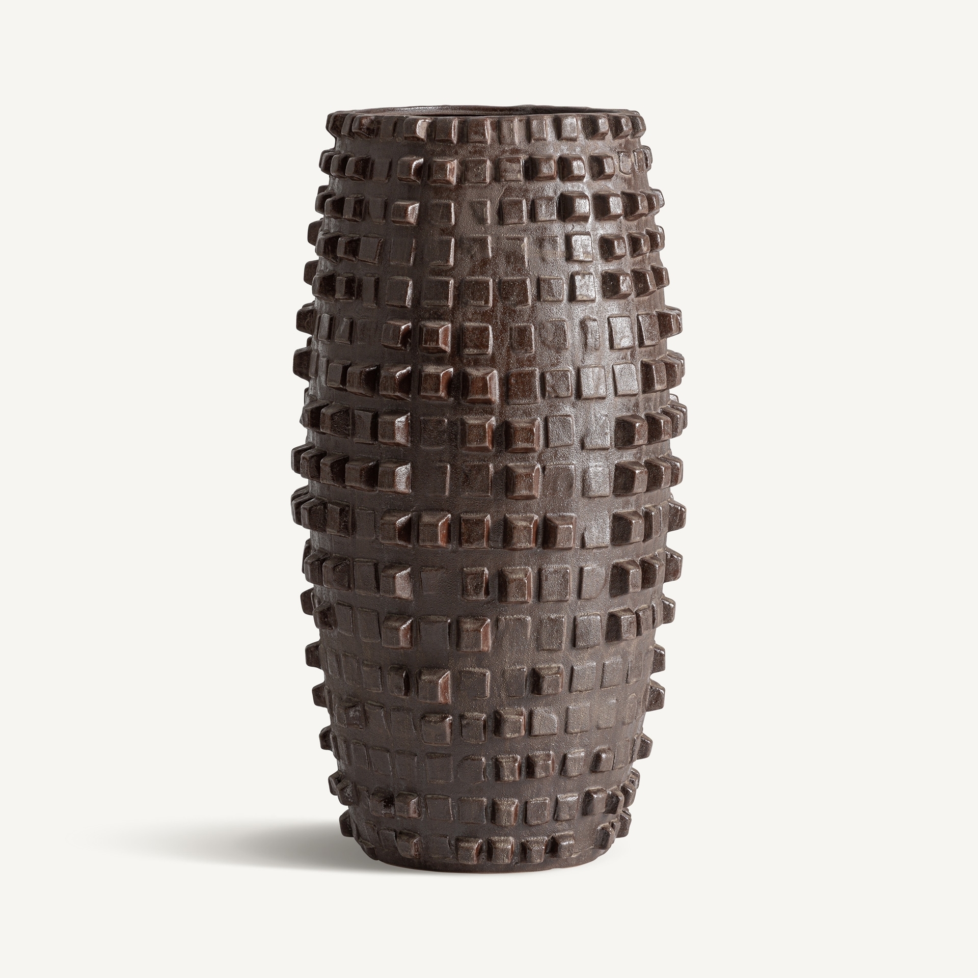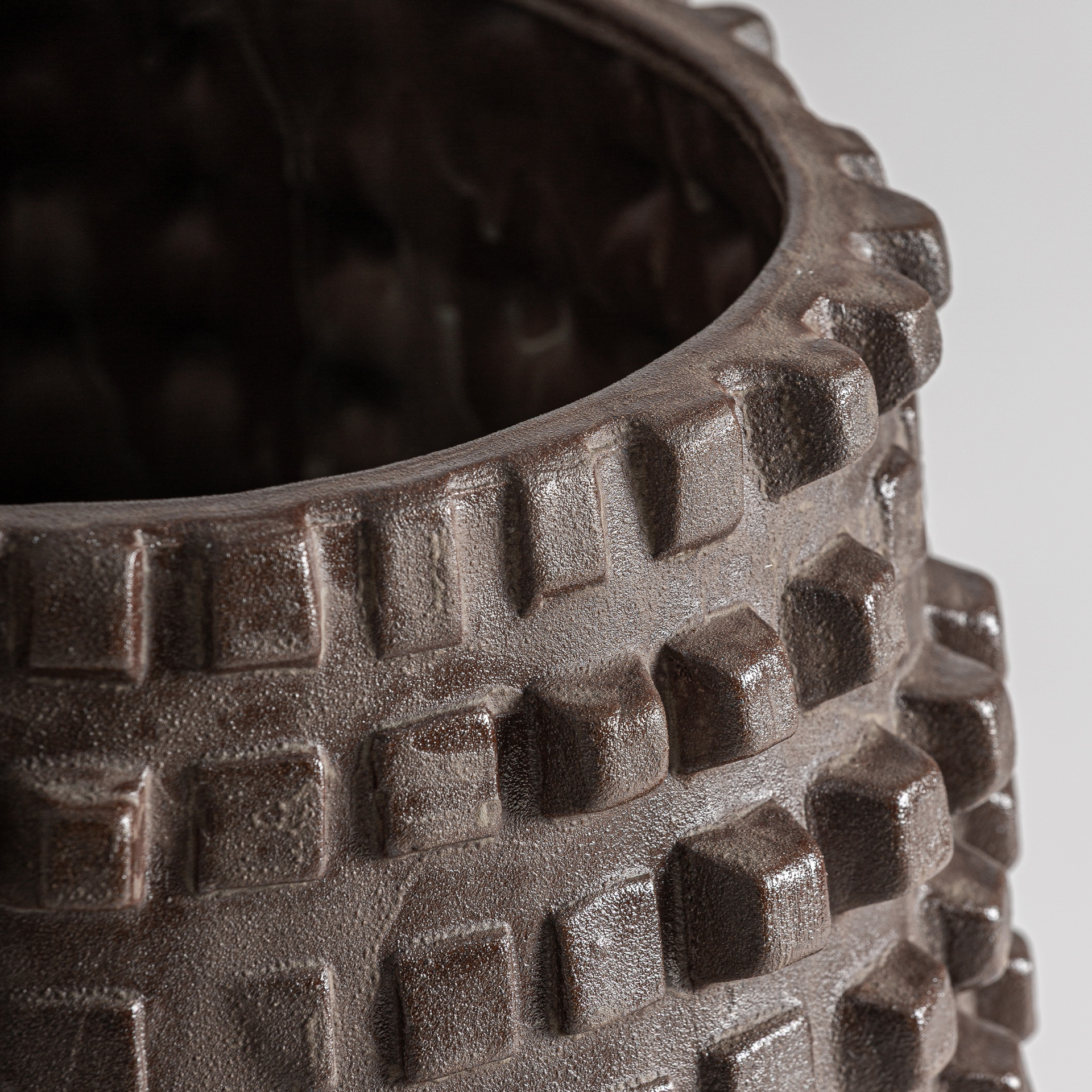 Ваза, изготовленная из коричневой керамики. Ширина: 30 см, Глубина: 30 см, Высота: 57 см