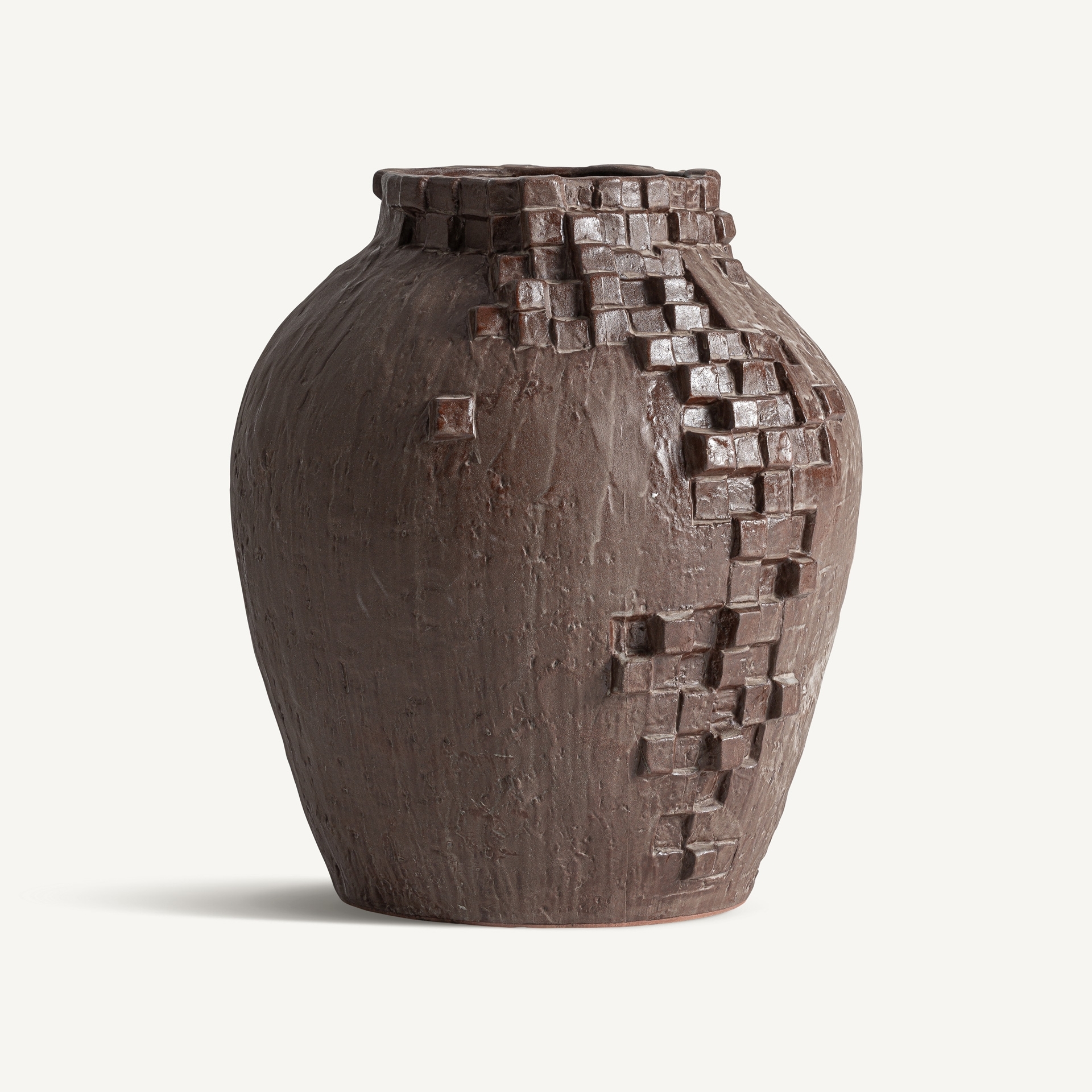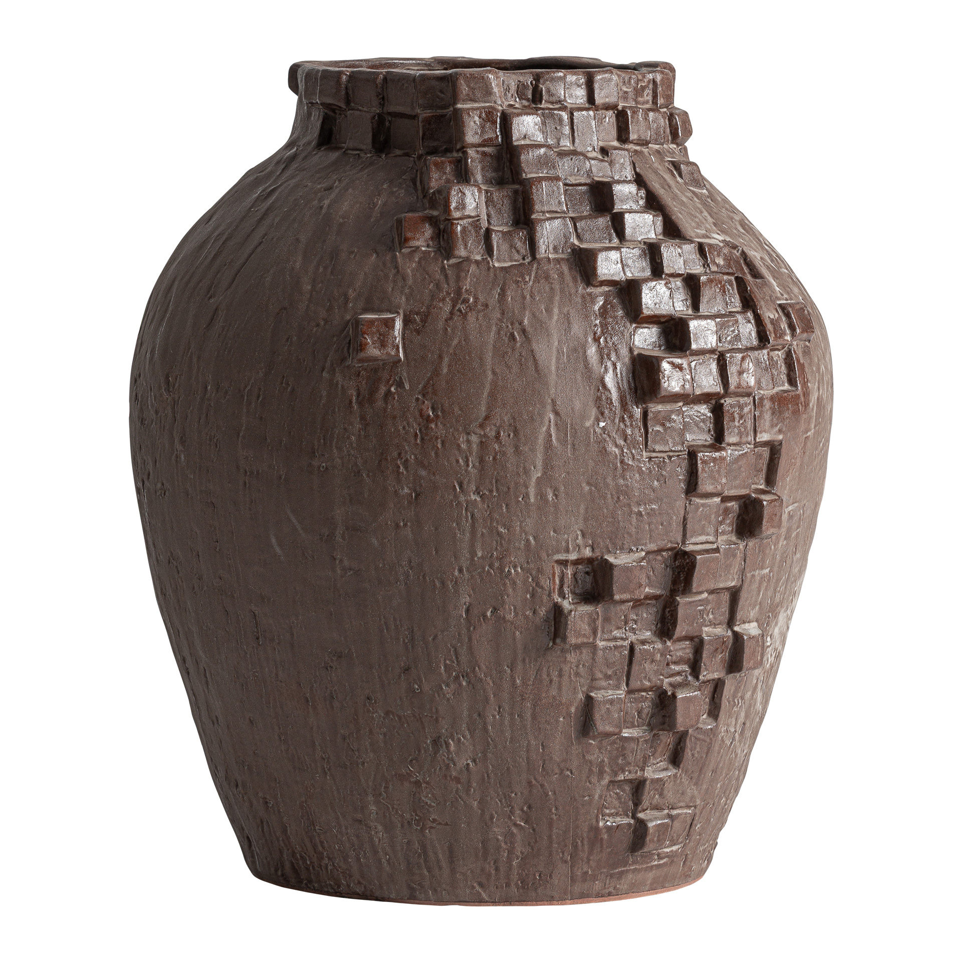 Ваза, изготовленная из коричневой керамики. Ширина: 37 см, Глубина: 35 см, Высота: 41 см