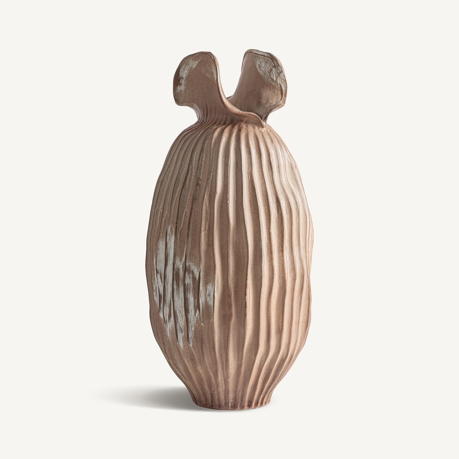 Ваза, изготовленная из керамики светло-коричневого цвета. Ширина: 30 см, Глубина: 30 см, Высота: 65 см