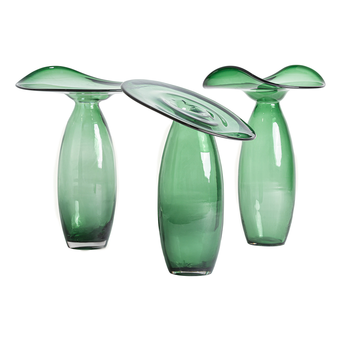 Ваза из зеленого стекла. Ширина: 37 см, Глубина: 32 см, Высота: 55 см