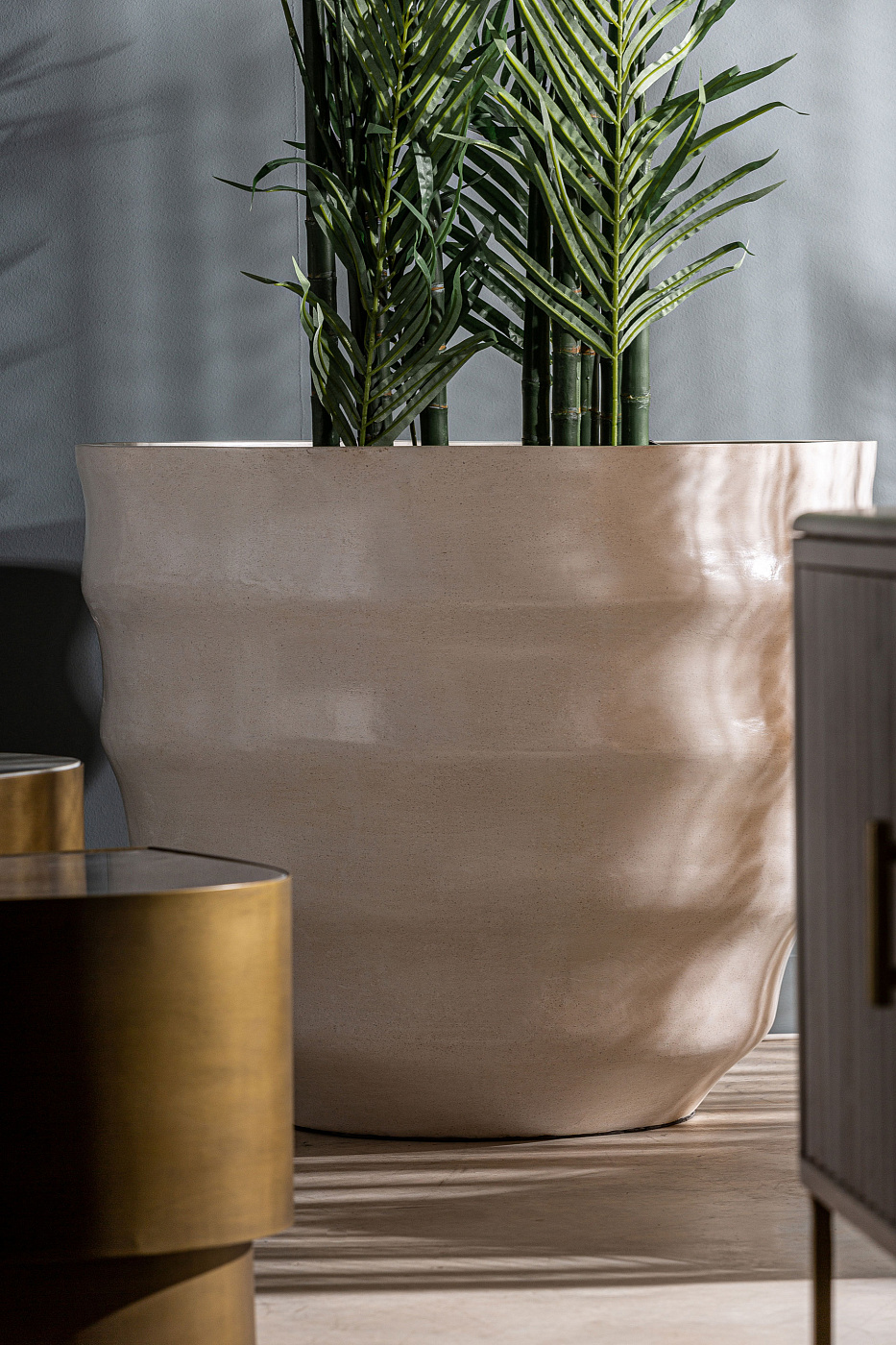 Огромная амфора, выполненная в белом цвете в современном стиле. Изготовлена из терраццо. Ширина: 80 см, Глубина: 80 см, Высота: 68 см