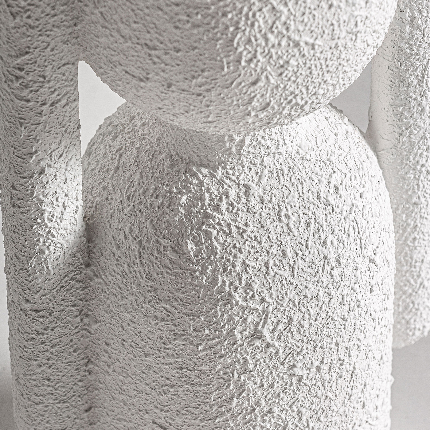 Ваза полностью изготовлена из керамики, которая окрашена в белый цвет матовой краской. Поверхность фактурная. Форма вазы симметричная - ширина донной части аналогична диаметру горловины. Для устойчивости снизу предусмотрены накладки.