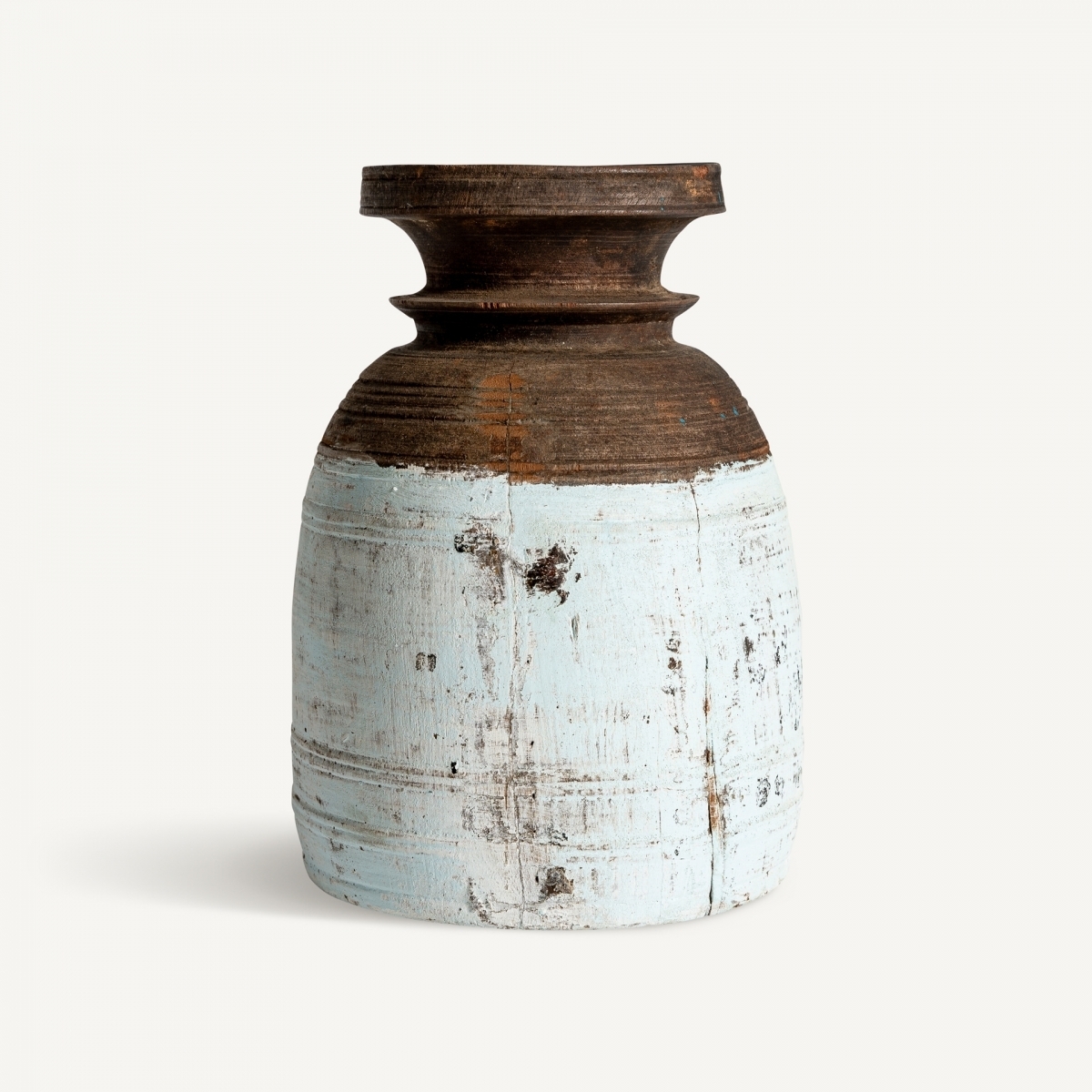 Калид ваза, в коричневых тонах, этнический стиль. Изготовлен из вторичной древесины. Ширина: 20 см, Глубина: 20 см, Высота: 30 см.