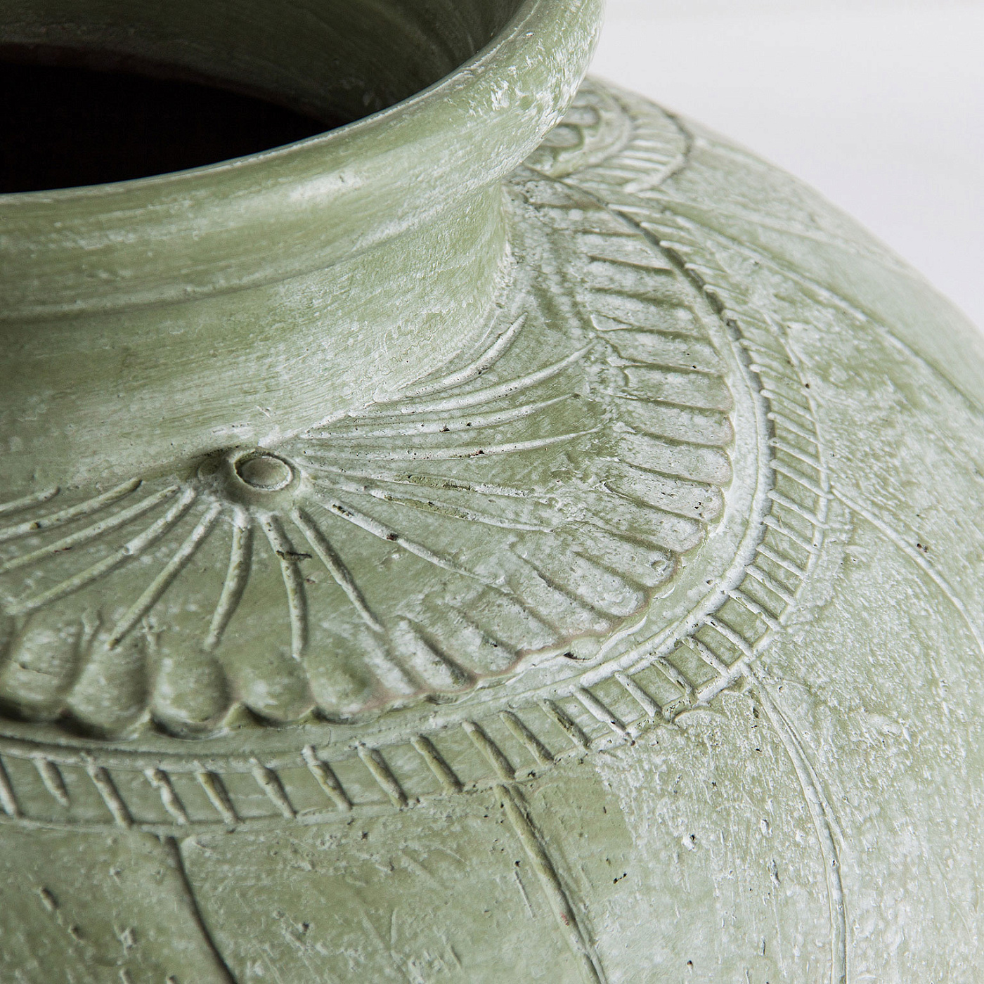 Амфора LLITIA в современном стиле, изготовленная из зеленой терракоты.