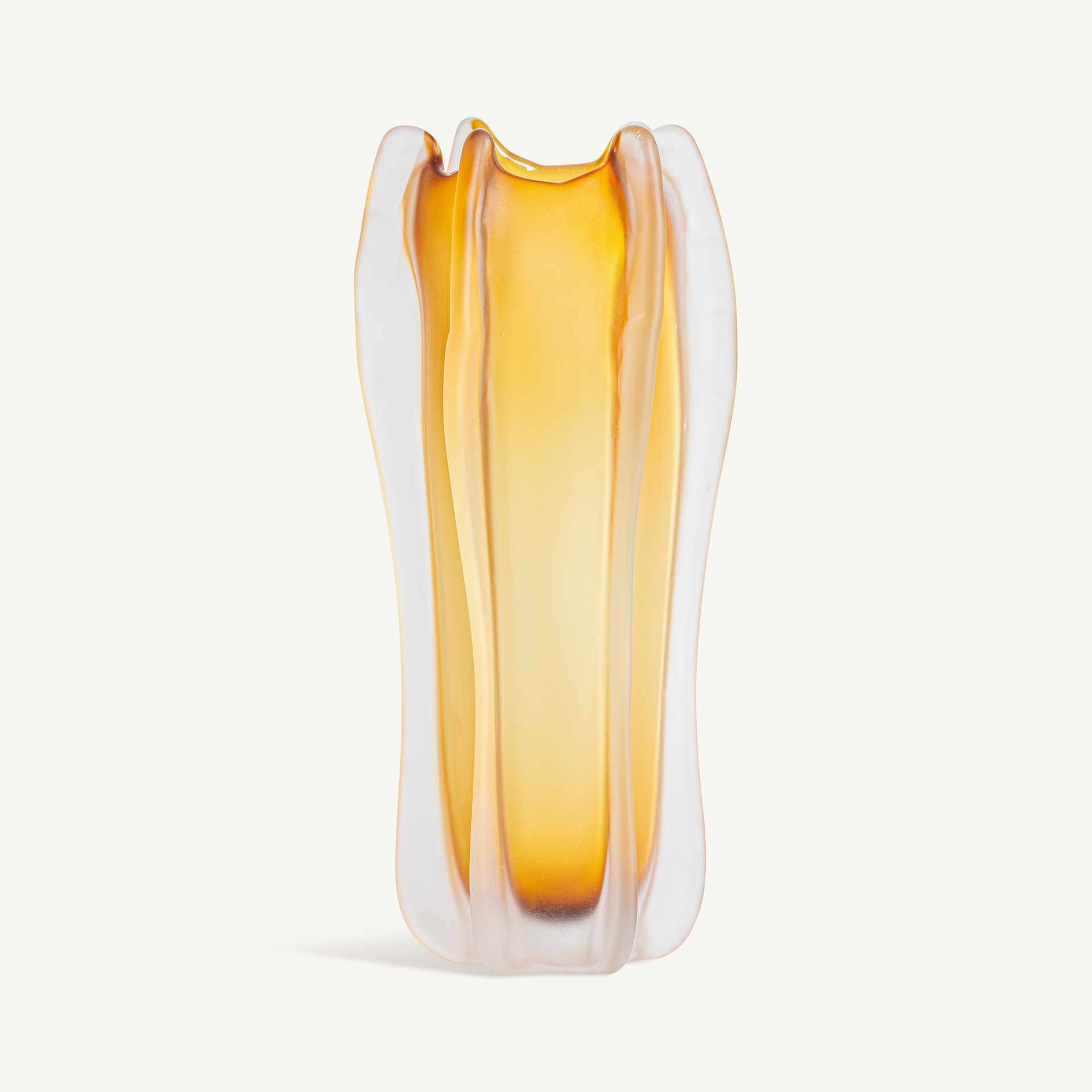 Ваза из стекла янтарного цвета. Ширина: 18 см, Глубина: 18 см, Высота: 40 см