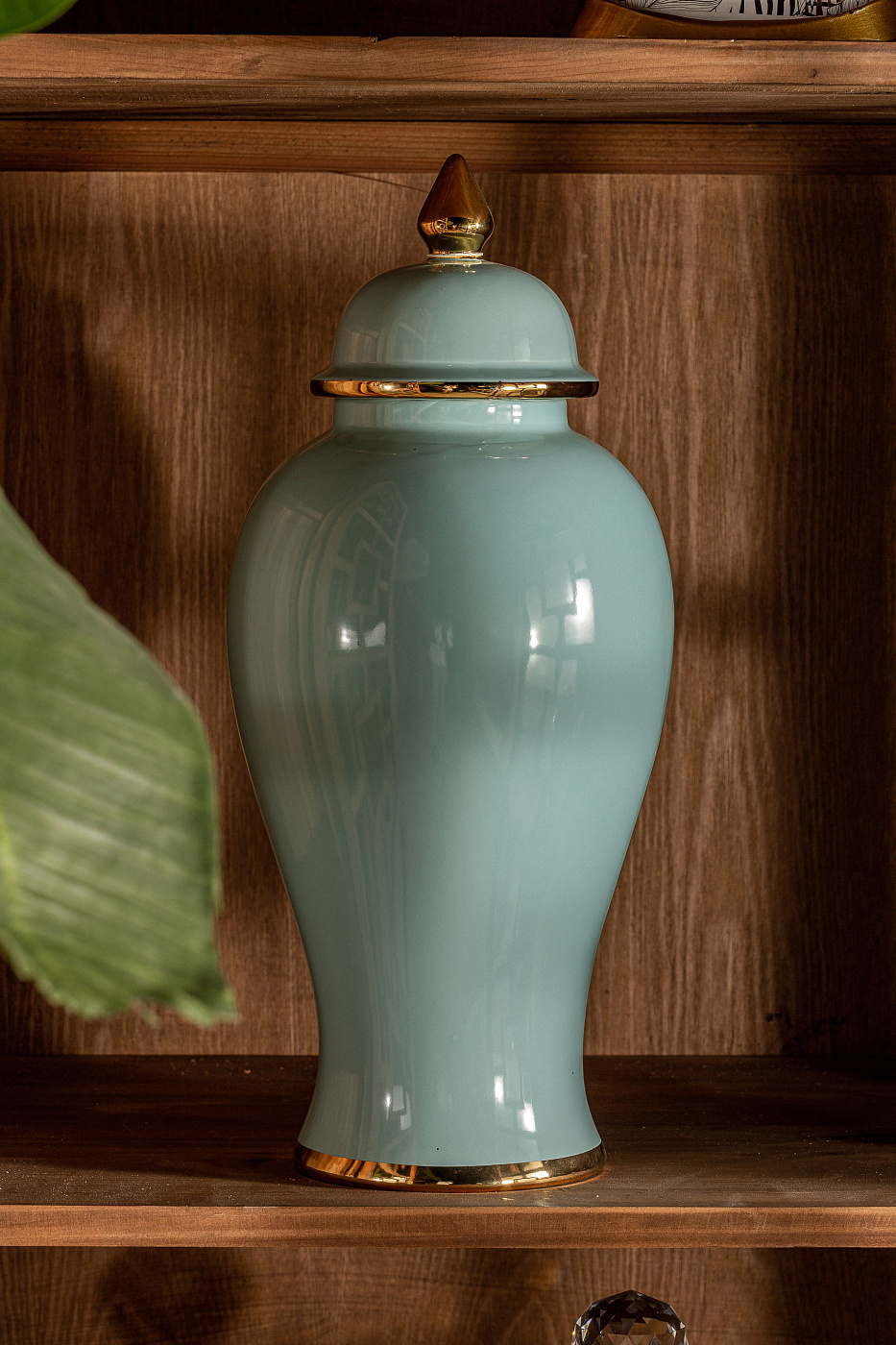 Ваза RIF, цвет синий/золото, стиль провансаль. Изготовлен из керамики. Ширина: 17 см, Глубина: 17 см, Высота: 42 см.