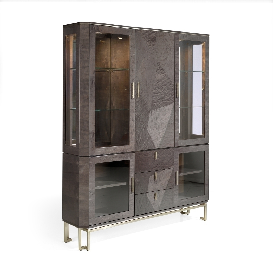 Современный витринный шкаф Bond из коллекции Bond — это предмет мебели для хранения, сочетающий в себе функциональность и эстетику. Благодаря уникальным геометрическим формам и нестандартным панелям шкаф привлекает внимание в любой комнате.