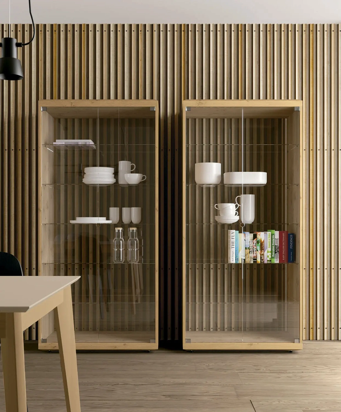 Вместительная, пропорциональная витрина, элегантно демонстрирующая и защищающая хранящиеся в ней предметы. Неподвластный времени дизайн высокой практичности.