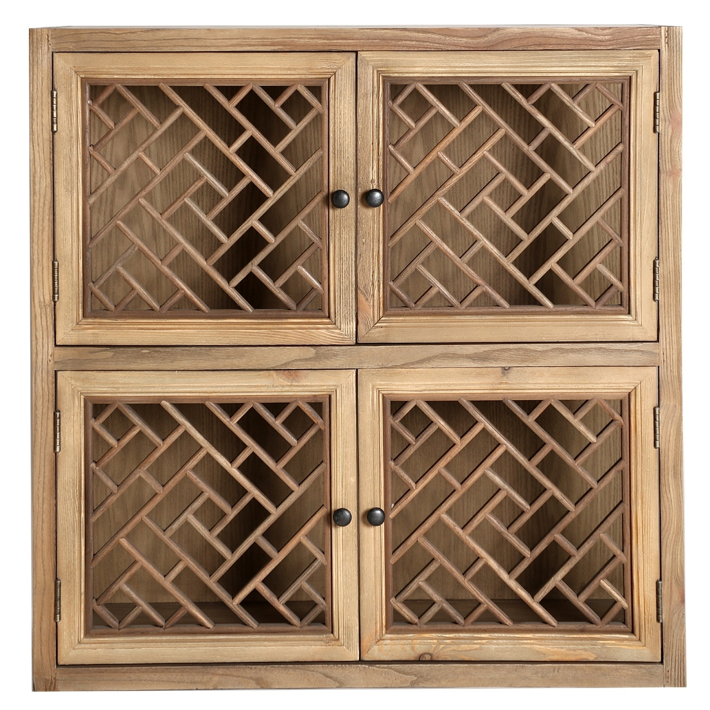 Модульная витрина натурального коричневого цвета в колониальном стиле. Изготовлен из древесины вяза в сочетании со стеклом.